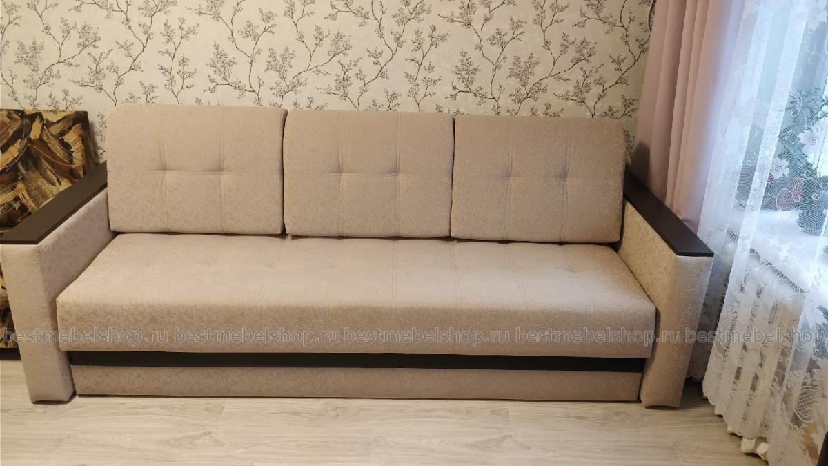 Диван очень удобный! Широкий! Переставляю подушки на бортик и нет необходимости раскрывать диван. Спальное место получается достаточным. Обивку поменяли специально для наших кошек на флок. Цвет замечательный. Привезли вовремя и собрали моментально. Всем довольны.
