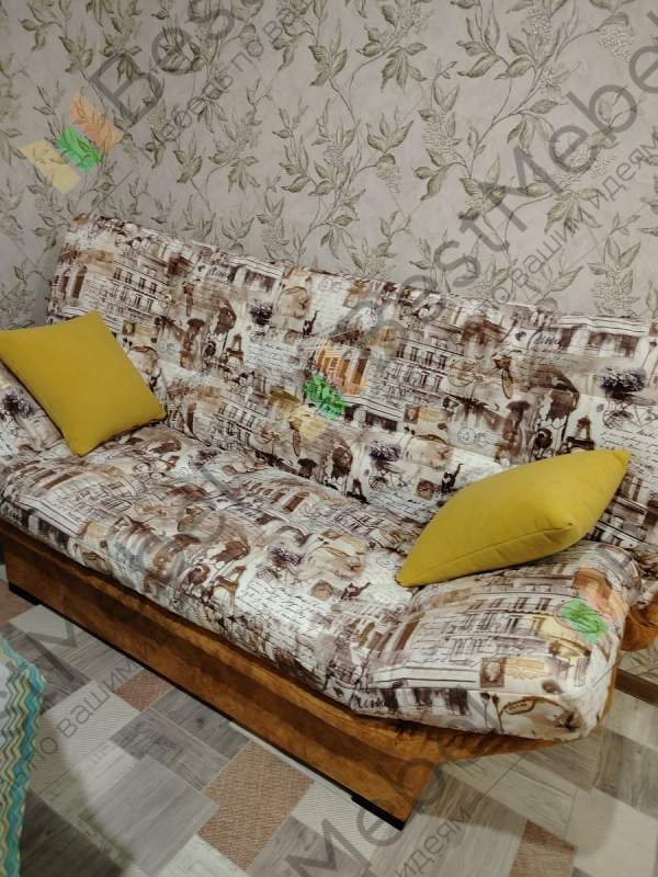 Мы выбрали пеструю обшивку и жёлтые подушки. Диванчик получился как картинка. Выглядит очень аккуратно, чехол можно снять. Легко раскладывается.                                      |