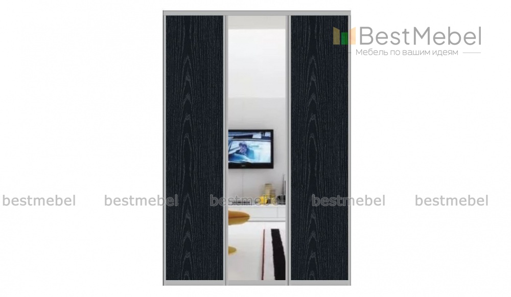 Двери-купе Аманда 2 BMS объединены в готовый фасад для гардеробной или шкафа. В комплект входят три створки в серебристом профиле – две в черном цвете с имитацией древесной текстуры и одна зеркальная, позволяющая видеть себя в полный рост. Эффектная композиция прекрасно вписывается в современные интерьеры и надолго сохраняет эстетичный вид благодаря износостойким материалам и фурнитуре. Купить двери-купе Аманда 2 BMS с учетом необходимых параметров вы сможете в нашем интернет-магазине.