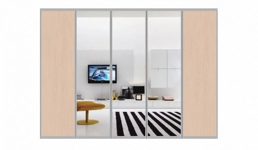 Двери-купе Марс 2 BMS – это надежность, удобство в эксплуатации и универсальный современный дизайн. В оформлении пятидверного фасада скомбинированы ЛДСП светлых древесных тонов и зеркала в рамах из профиля серебристого оттенка. Раздвижные двери подходят для монтажа просторных шкафов и гардеробных, помогая сохранить полезную площадь комнаты и визуально расширить ее границы. Купить двери-купе Марс 2 BMS приглашаем в наш интернет-магазин, подобрав оптимальные размеры и цвет по каталогу.