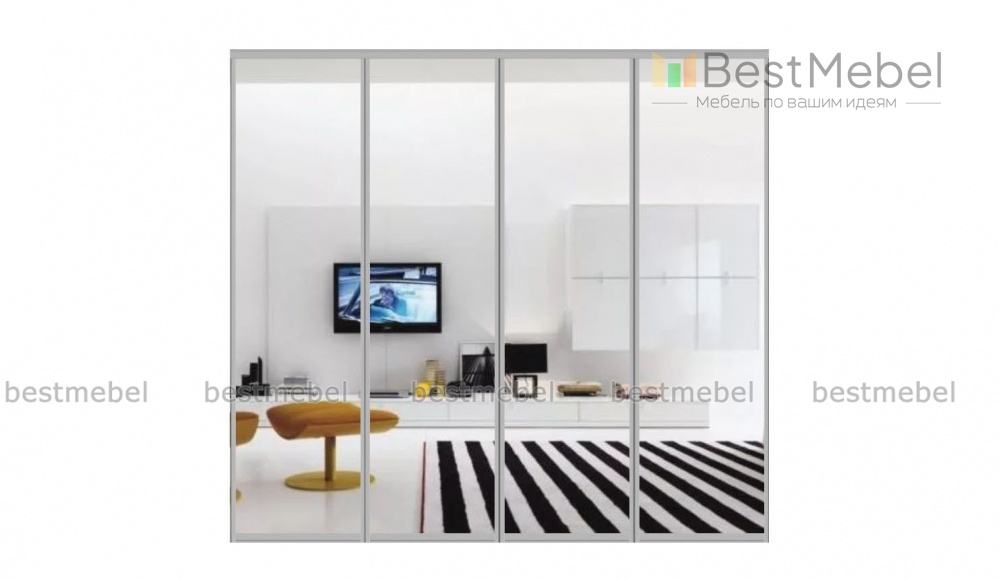 Двери-купе Римо 1 BMS эффектно впишутся в современные интерьеры и придадут комнате дополнительную глубину и объем. Четыре полностью зеркальные створки в рамах из серебристого профиля объединены в готовый фасад для гардеробной. Двери станут полноценной заменой напольным и навесным зеркалам, а также сохранят полезную площадь комнаты, не требуя дополнительного пространства для открывания. Купить двери-купе Римо 1 BMS вы сможете в нашем интернет-магазине, подобрав оптимальные размеры.