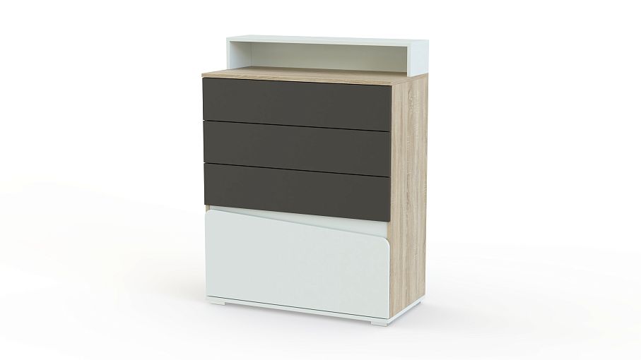 Комод для детской Алиса BMS отличается ярким дизайном и функциональностью. Четыре выдвижных ящика разной высоты и широкая столешница с надстройкой помогут легко поддерживать в комнате порядок и компактно разместить постельное белье, одежду в сложенном виде, аксессуары и множество мелочей. Комод выполнен в белом цвете с контрастными вставками, фасад нижнего ящика асимметрично вырезан и скруглен по краям. Купить комод для детской Алиса BMS и дополнить систему хранения практичным предметом вам поможет наш интернет-магазин.