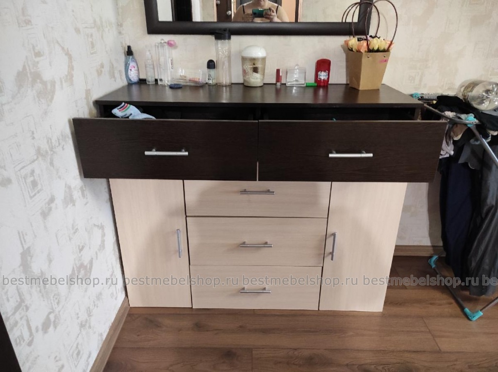 Комод Лидер 2.5 BMS покупала в зал. Им заменила тумбу под телевизор. Очень хорошо смотрится, практичный, так как много места и за дверцами и в выдвижных ящиках. Приемлимая цена при высоком качестве. Понравилось все, включая возможность выбирать цвет и размеры. Удобный график приема заказов и доставки. Могут поднять на этаж и собрать, но это уже вопрос цены. Спасибо!