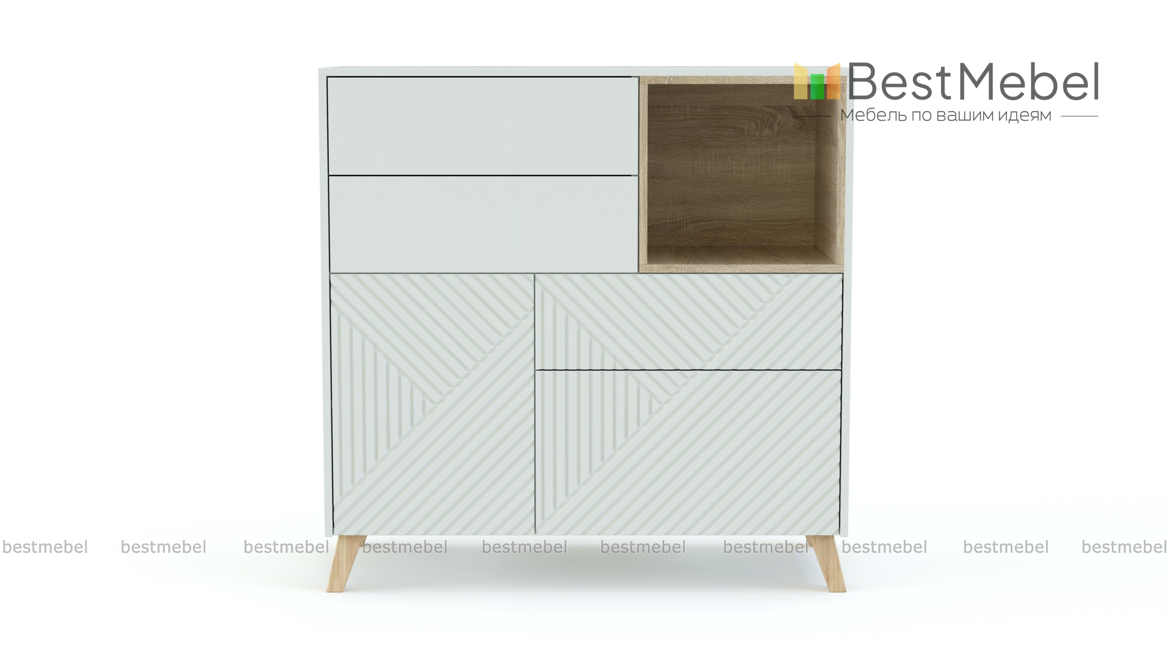Комод Орфей 3 BMS - эффектная и вместительная модель в современной эстетике. Вместительные выдвижные ящики, секция с распашной дверцей и просторная ниша расположены асимметрично, создавая узнаваемый, но при этом достаточно универсальный дизайн. В оформлении комода светлого базового оттенка использованы геометрическая фрезеровка и теплые древесные акценты. Купить комод Орфей 3 BMS вы сможете в нашем интернет-магазине, самостоятельно подобрав цвета и размеры.