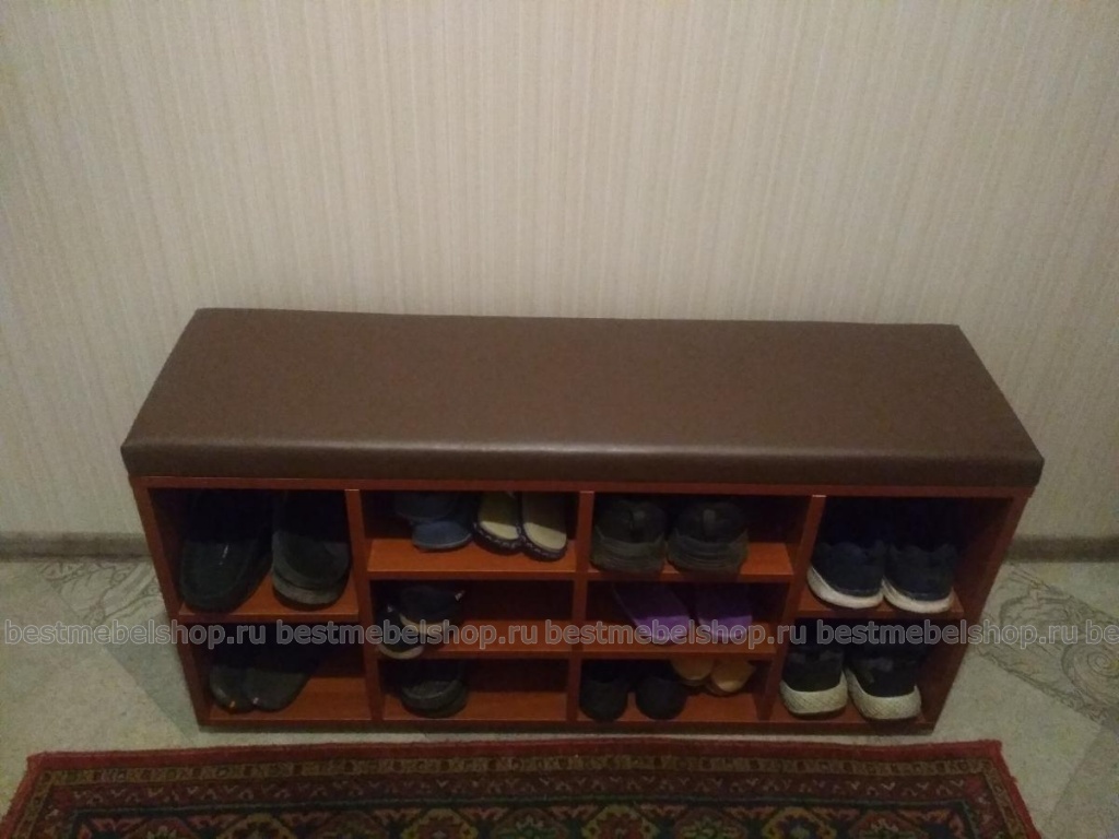 Заказ №00000822618 шикарная обувница! идеально вписалась в интерьер. Удобно, что полочки разной высоты подходят под разную обувь. Обувница устойчива, сидеть на ней очень удобно.