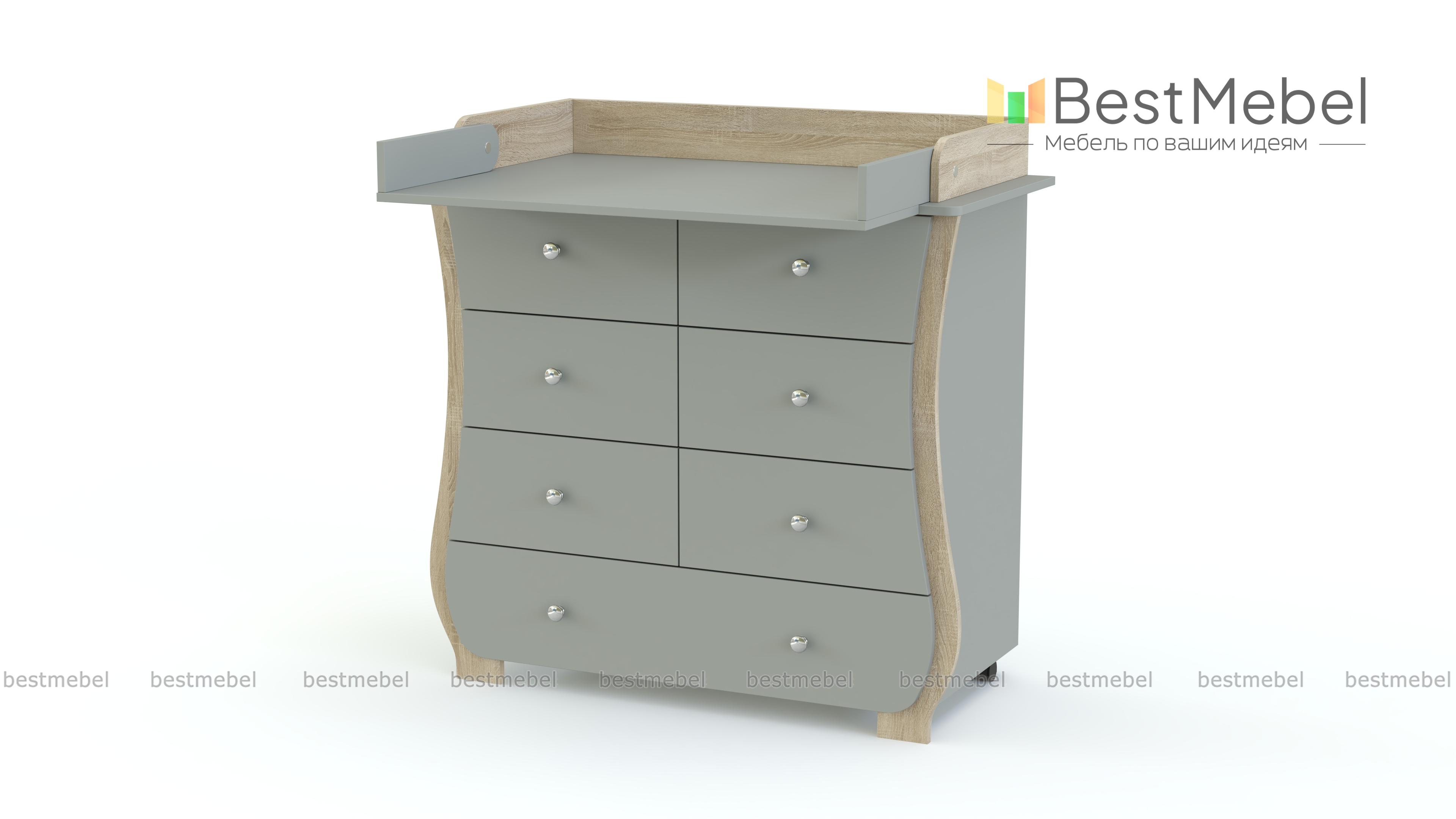 Пеленальный комод Альт 1 BMS с изящно вырезанным фасадом без острых углов украсит современную детскую и сделает уход за малышом комфортным. В одном большом и шести малых выдвижных ящиках, оснащенных ручками-кнопками, удобно хранить средства гигиены, постельное белье, одежду и игрушки. Благодаря откидному столику вы сможете увеличить пеленальную поверхность, а колесики обеспечат комоду легкость перемещения. Купить пеленальный комод Альт 1 BMS приглашаем в наш интернет-магазин, подобрав цветовое решение.