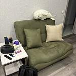Выбрала цвет олива искусственная замша. Добавила наполнение ППУ 35. По визуалу кресло немного отличается от модели на сайте, возможно из-за дополнительного наполнения ППУ. Кресло удобное, идет без подушек, но я с софы перенесла на кресло и стало удобнее.