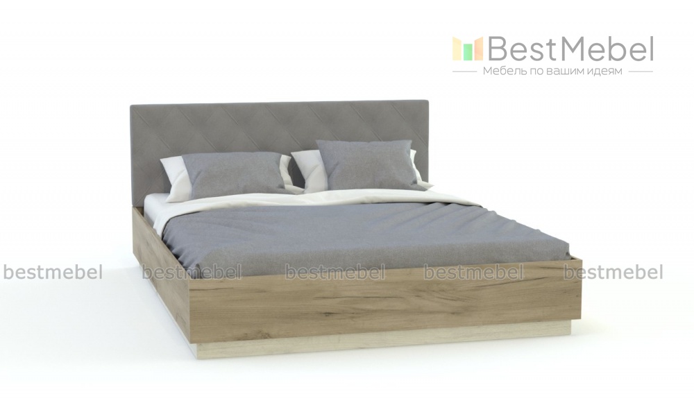 Кровать Бруно BMS отличается простотой формы и эффектно сочетает в оформлении разные фактуры – ЛДСП с имитацией древесного массива и мягкую обивку нейтрально-серого цвета. Просторное спальное место без спинки в изножье дополнено высоким изголовьем с декоративной прострочкой ромбами. Двухъярусное глухое основание отличается надежностью и устойчивостью, но при этом не смотрится громоздко. Купить кровать Бруно BMS вы сможете в нашем интернет-магазине, подобрав необходимые размеры.