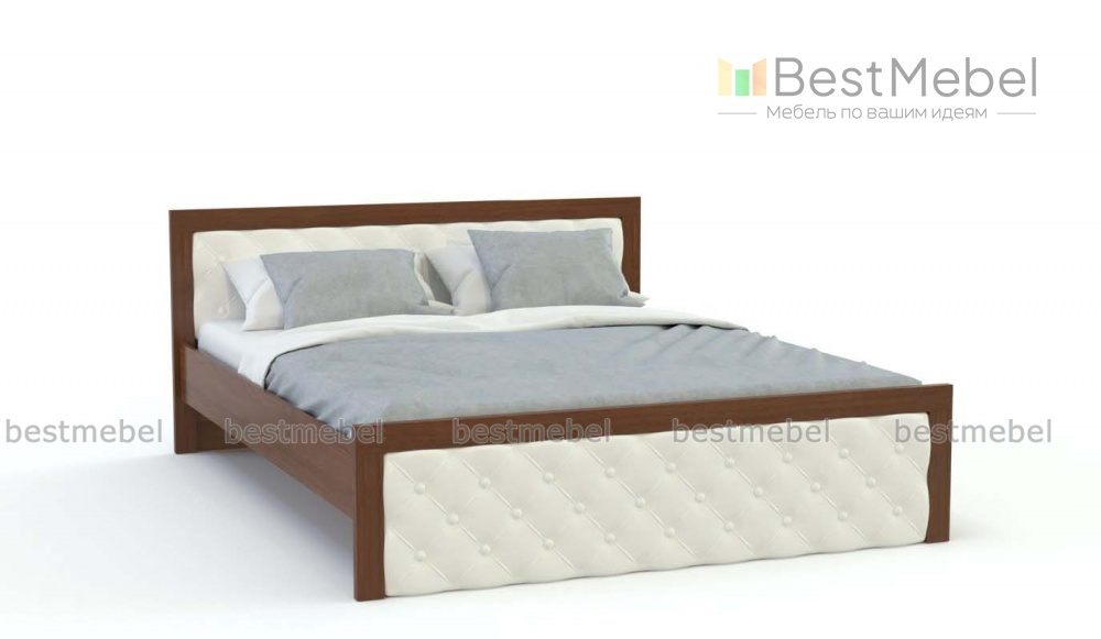 Кровать Гудзон BMS выполнена из высококачественной ламинированной плиты насыщенного древесного оттенка, а мягкие вставки из экокожи с каретной стяжкой придают ей особенно уютный вид. Модель с двумя опорными спинками надежна и устойчива, а просторное спальное место подарит комфортный отдых. Средней высоты изголовье позволит удобно расположиться сидя или полулежа. Купить кровать Гудзон BMS с выбором необходимых размеров вы сможете в нашем интернет-магазине.