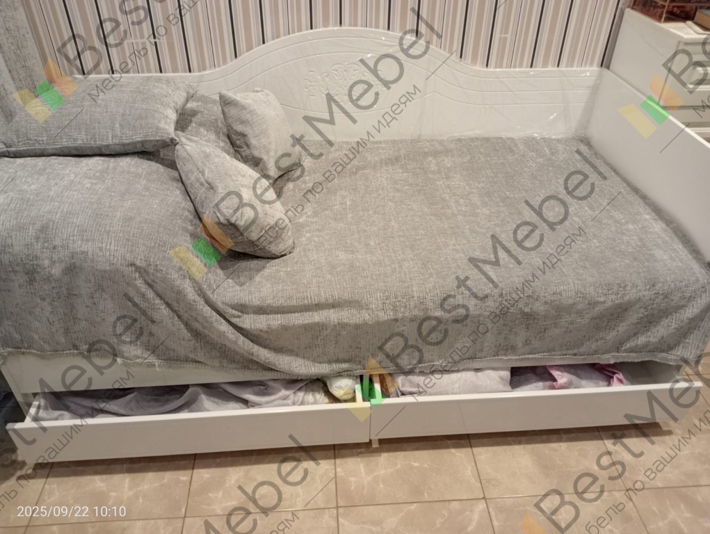 Если бы можно поставить 10 звезд- поставила бы с удовольствием! Кровать просто великолепна! Но хотелось бы сказать о самой услуге. В стандарте кровать подразумевает ящики на колесиках. Инженеры бестмебели разработали проект, в котором яшики были с направляющими. Прислали проект на утверждение. После согласования доставили ( как обещали) не только день в день, но минута в минуту. Сборщик( компания -партнер) тоже не подвел. Собрал быстро и аккуратно. Кровать получилась просто восторг! Белая, с глянцевой спинкой и ящиками. Как можно было совместить в одном проекте фундаментальность и изящество, не знаю, но бестмебели это удалось за счет фигурной спинки и фрезеровки. Качество изумительное. Ровненькая, беленькая, тяжеленькая, устойчивая, надежная и очень красивая. Огромная благодарность всем: от менеджера до сборщика! Качество и организованность! Желаю успехов и процветания, потому что с такой фирмой иметь дело - одно удовольствие!                                      |