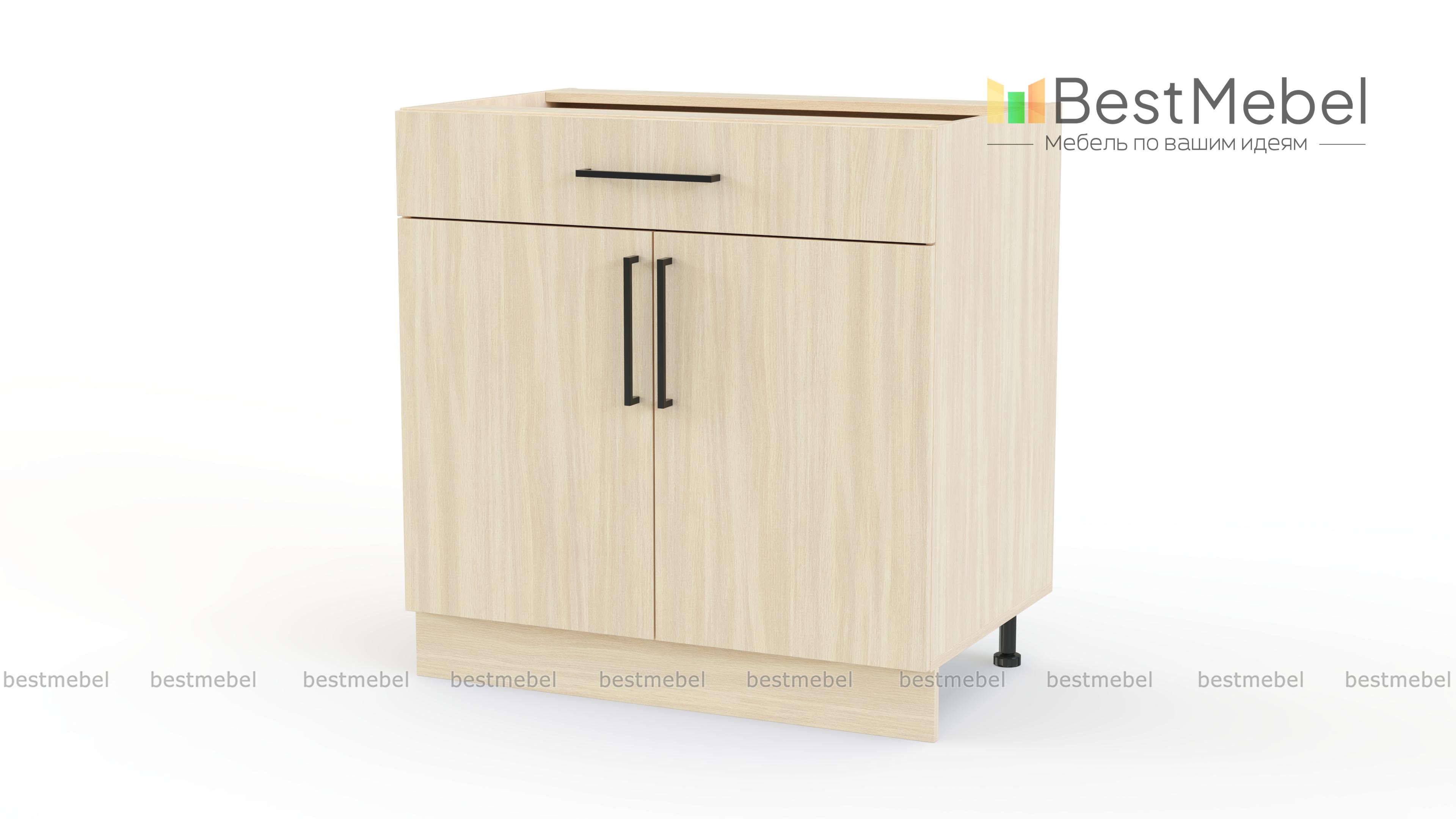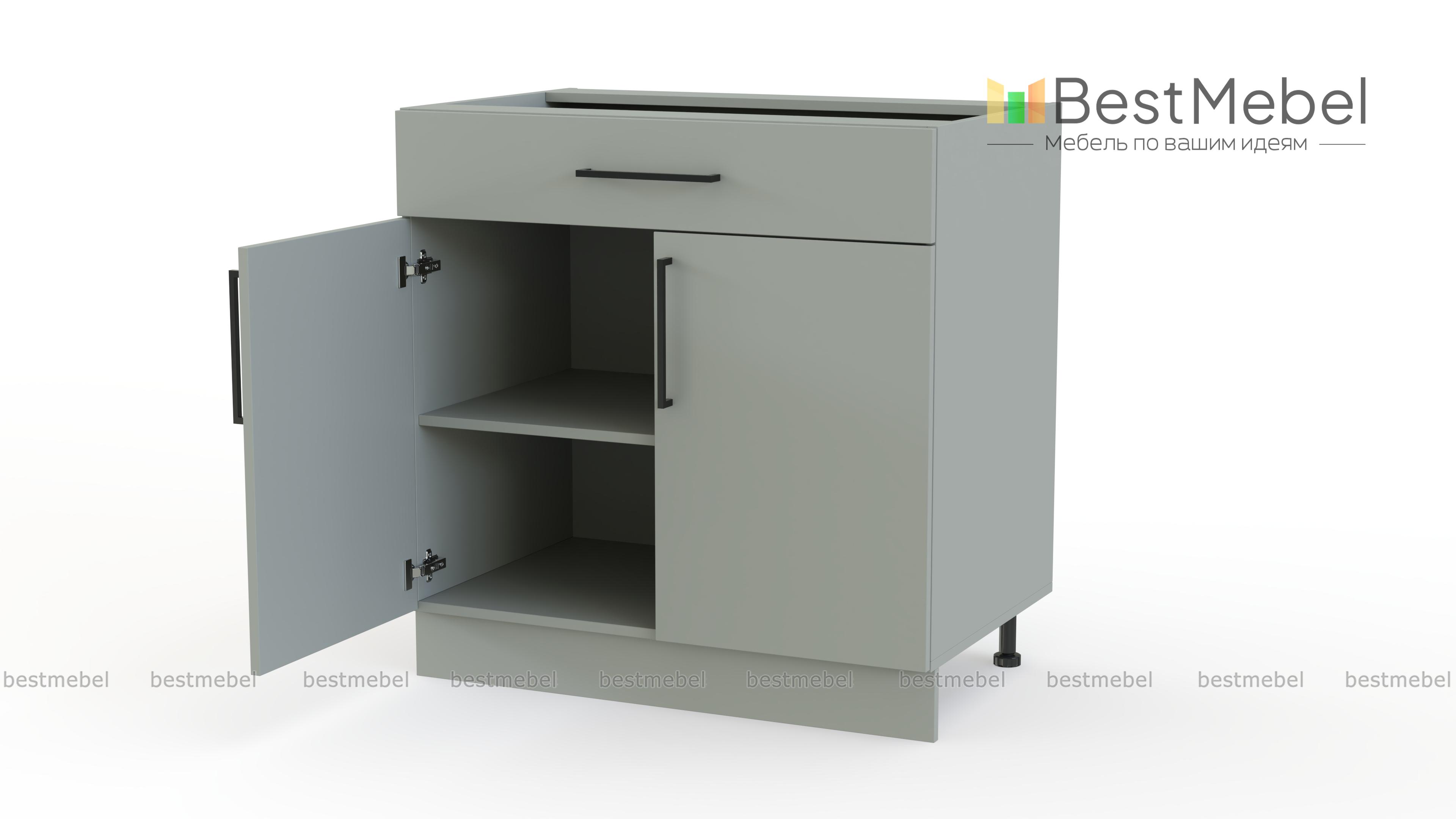 Шкаф нижний с ящиком Лайт BMS поможет разместить под рукой столовые приборы и кухонные мелочи, а для посуды и продуктов предусмотрено распашное отделение с полкой. Выполненный в нейтральном оттенке из прочной ламинированной плиты, шкаф надежен в эксплуатации и легко вписывается в современный интерьер. На фасады выдвижного ящика и двух дверей установлены стильные накладные скобы. Купить шкаф нижний с ящиком Лайт BMS вы сможете в нашем интернет-магазине с учетом необходимых размеров.