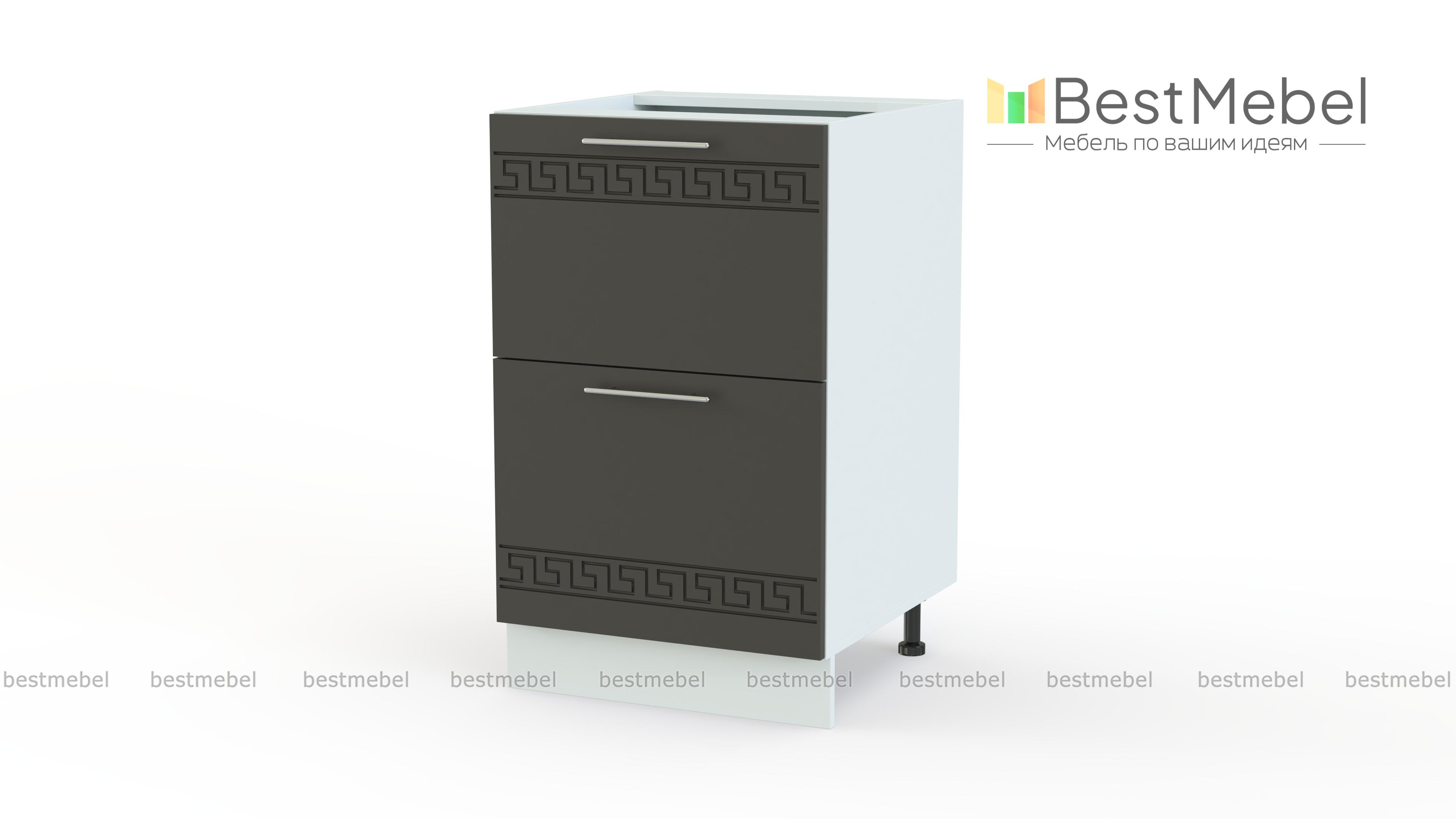 Тумба напольная 2 ящика Греция BMS – широкая модель, которая будет органично смотреться в просторных помещениях. Уместная и как самостоятельный предмет меблировки, и в комплекте, тумба выглядит легкой со светлыми фасадами, украшенными изящными ручками и орнаментом в этностиле. Для размещения мелких кухонных принадлежностей предусмотрены два просторных выдвижных ящика. Купить тумбу напольную 2 ящика Греция BMS, эффектную и удобную в эксплуатации, приглашаем по доступной цене в наш интернет-магазин.