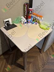 Хороший, компактный стол. Заказывал на маленькую кухню 5,5 м2. Встал отлично! Цвет тэффи л и толстая кромка. Отверстия под ножки не засверлены изначально.