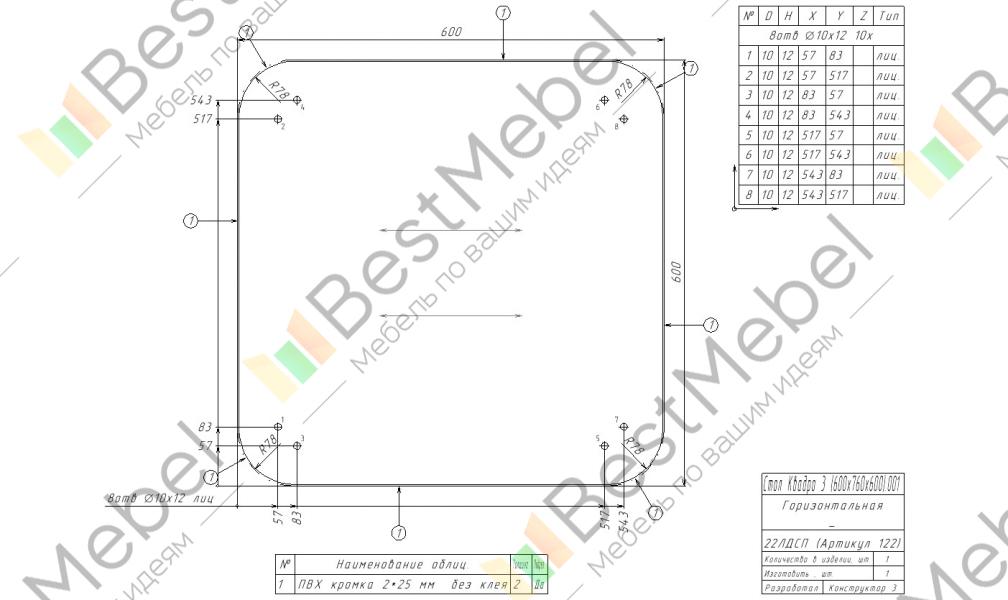 | Тип кромки | Кромка 0,4мм (можно изменить) |