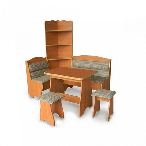 По максимуму использовать свободное пространство кухни позволит оригинальный уголок Славянский макси BMS. Входящий в комплект угловой диван оборудован высоким стеллажом с открытыми полками в центральной части, на которых удобно расположатся не только хозяйственные мелочи, но и предметы декора. Сиденья дивана и двух табуретов обтянуты практичным мягким материалом и отличаются особым комфортом. За столом, оснащенным раскладным механизмом, разместится вся семья.