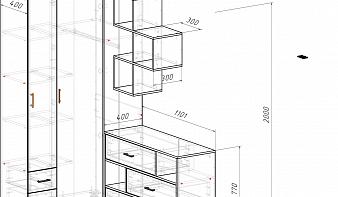 Шкаф-купе угловой с нишей и столом Зима BMS