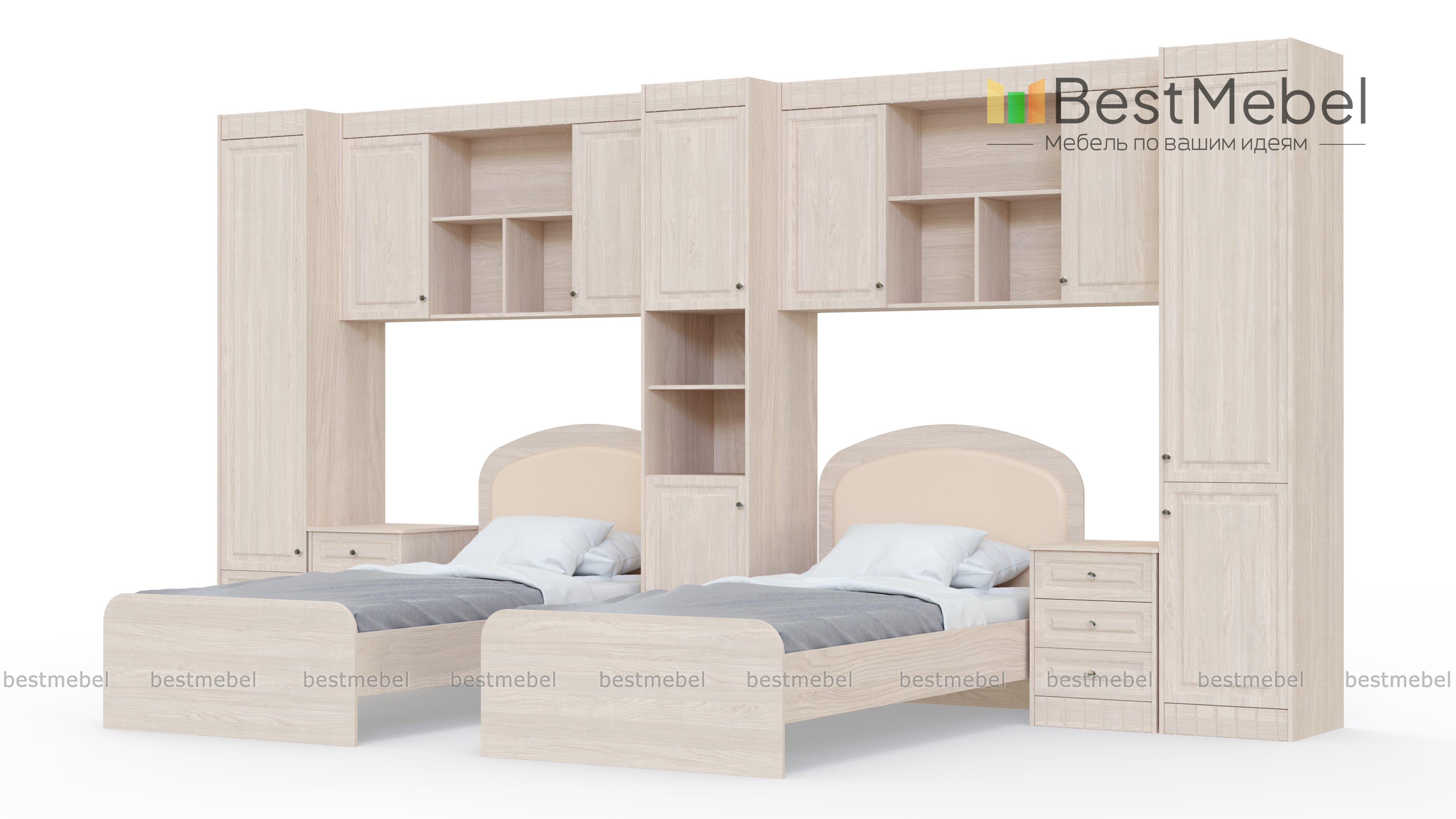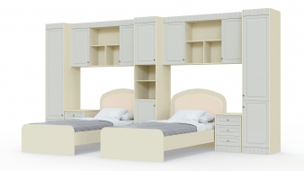 Детская комната Матильда 8 BMS включает в себя все необходимое уютной спальне для девочек. Модульная композиция в классическом стиле включает в себя две кровати с прикроватными тумбами и мягкими накладками в изголовье, три пенала для хранения одежды, постельного белья, книг и игрушек, а также межсекционные полки. Выполненные в ванильных тонах, предметы декорированы по фасаду рамочной фрезеровкой. Купить детскую комнату Матильда 8 BMS вы сможете в нашем интернет-магазине по выгодной цене.