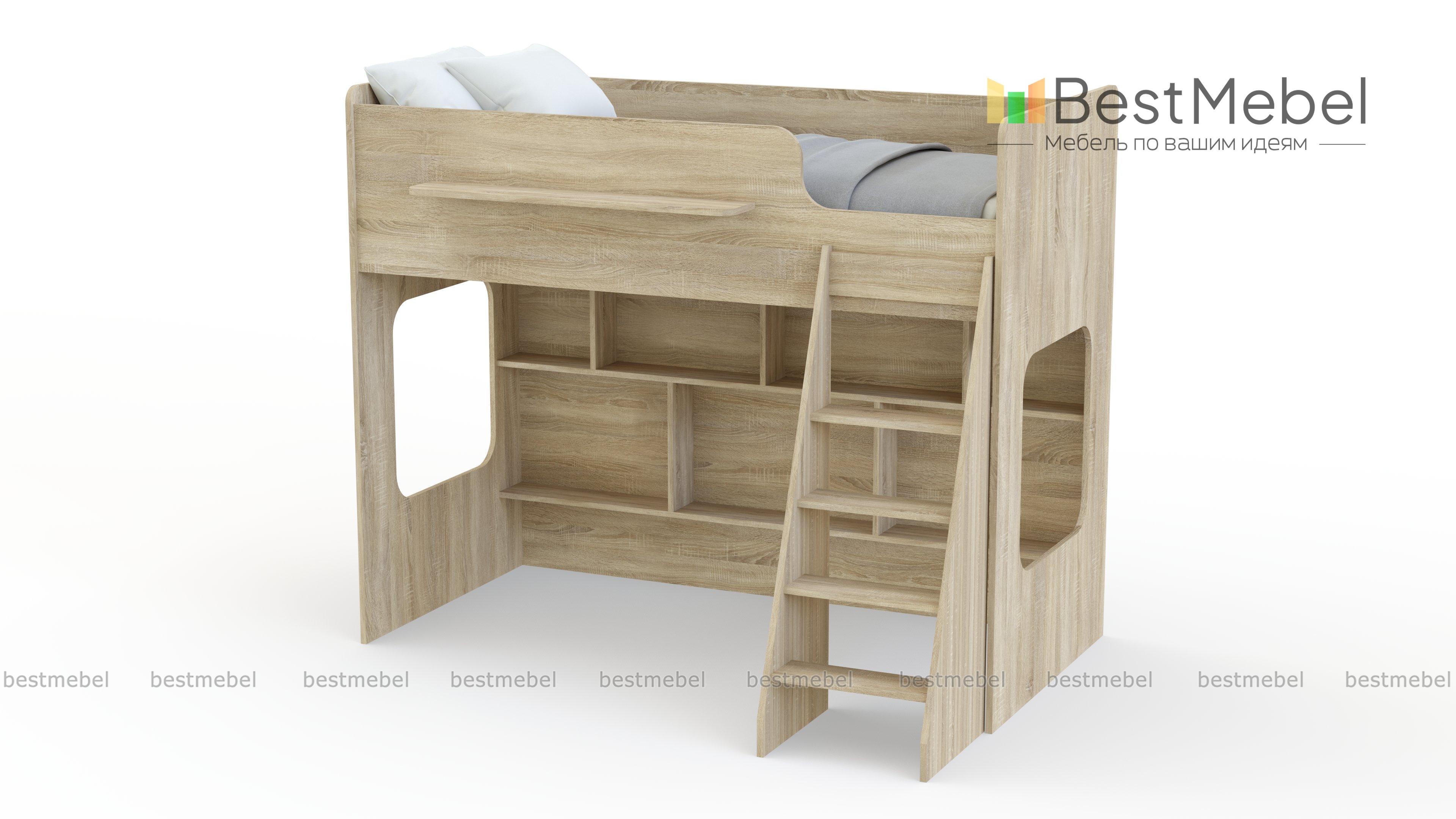 Детская кровать-чердак Миф 22.1 BMS объединила комфортное спальное место и игровую зону. Многофункциональная модель для современной детской оборудована кроватью с защитными бортиками, устойчивой лестницей с широкими ступенями и вместительным стеллажом, на открытых полках которого разместятся игрушки и книги ребенка. Безопасность и комфортное пользование обеспечат износостойкие, экологичные материалы и скругленные углы всех поверхностей. Купить детскую кровать-чердак Миф 22.1 BMS приглашаем в наш интернет-магазин.
