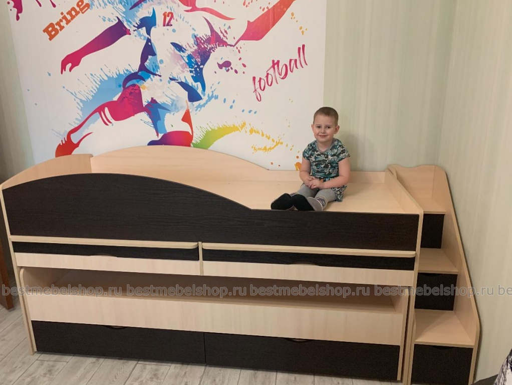 Заказала кровать для девочек 5 и 7 лет. Потрясающая! Яркая, удобная, большая. Идеально вписалась. Заказывала на сайте (вместе с матрасами). Очень удобный интерфейс, широкий выбор цветов, можно менять размер. Заказ быстро был согласован. Каждый этап проговаривался. Доставка вовремя. Никаких нареканий к сотрудникам магазина или доставке. С мужем кровать собирали самостоятельно и, к сожалению, супруг не рассчитал силу,сломал деталь, но сотрудники быстро приняли в работу то, что необходимо заменить сломанную деталь (естественно за наш счёт) и в течение суток всё было готово. Я осталась довольна не только самим изделием, но и местом, где его купила.