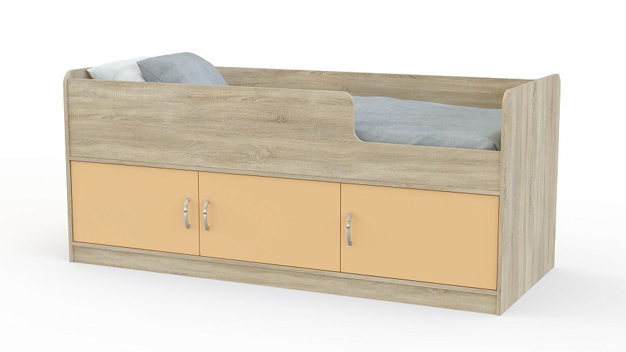 Детская кровать Миф 35 BMS – комфортное спальное место и удобная система хранения. Модель в сочетании светлых древесных тонов и цветных вставок гармонично впишется в интерьер современной детской и поможет сэкономить полезную площадь для игр. Кровать оборудована просторным спальным местом, ограниченным скругленными защитными бортиками, и распашными отделениями в основании, удобными для хранения игрушек и постельного белья. Купить детскую кровать Миф 35 BMS приглашаем в наш интернет-магазин, подобрав цветовое решение.