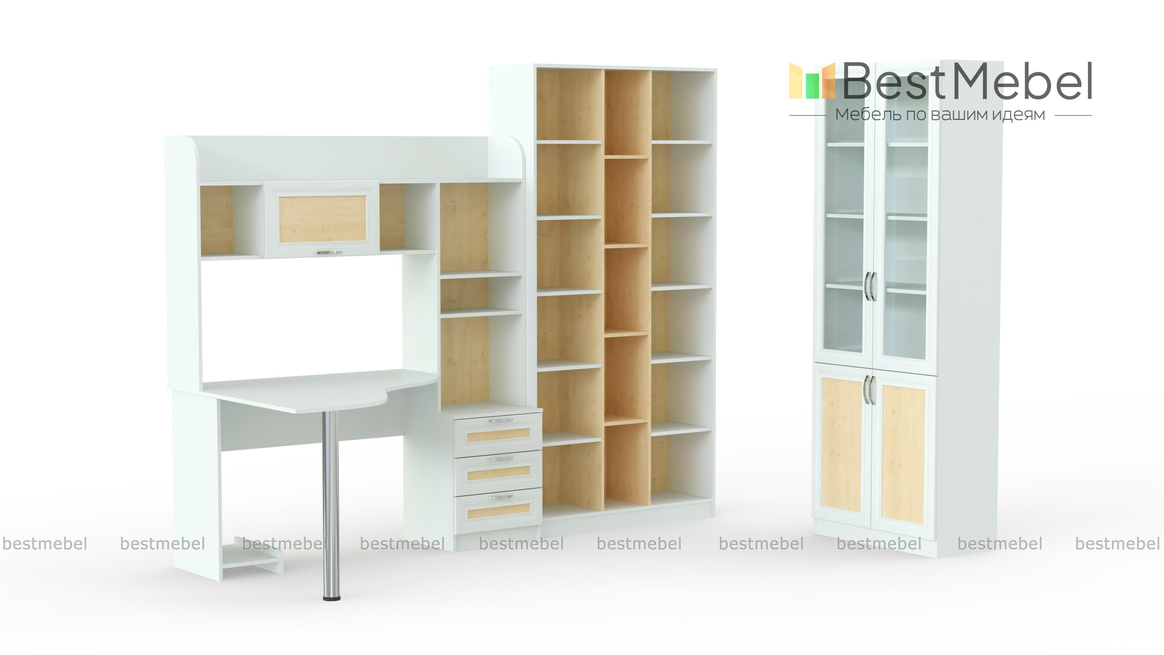 Детская OSTIN BMS выполнена в универсальных светлых оттенках под массив дерева с белыми вставками и оборудована всем необходимым для комфортной учебы. Компьютерный стол со столешницей эргономичной формы дополнен навесной секцией и комбинированным стеллажом с выдвижными ящиками для канцелярских мелочей. Для книг, спортивных и школьных принадлежностей предусмотрены вместительный стеллаж и шкаф с распашными застекленными дверцами. Купить детскую OSTIN BMS недорого приглашаем в наш интернет-магазин.