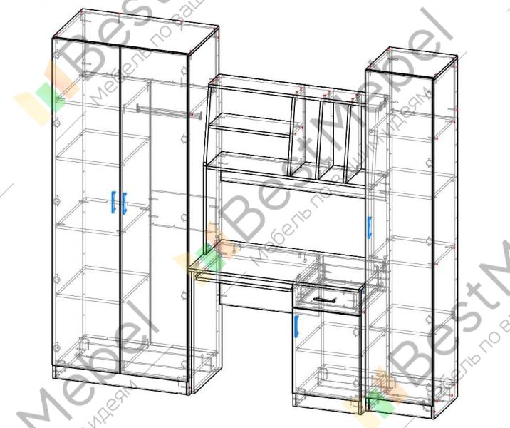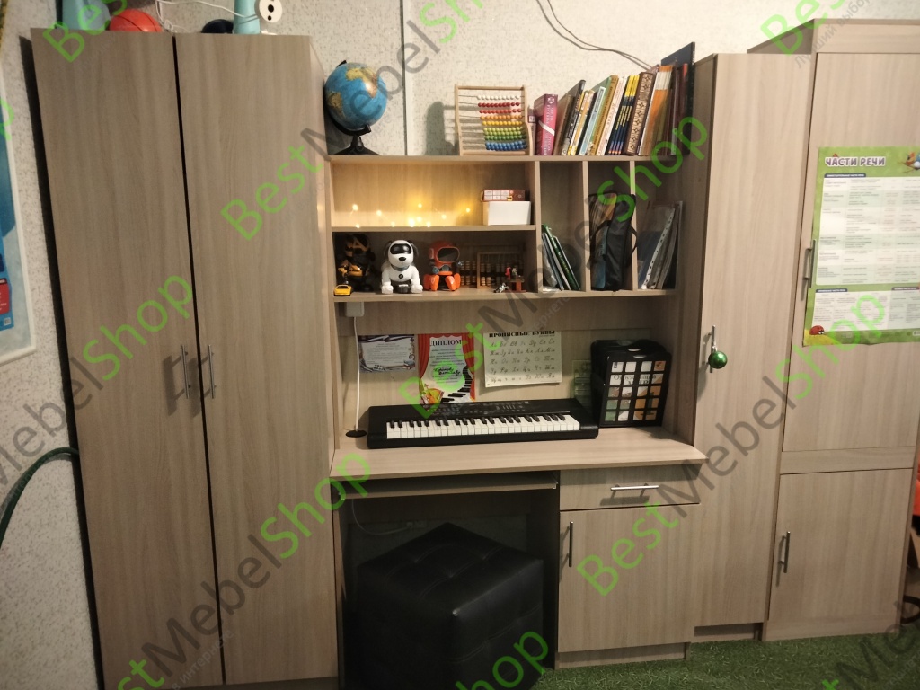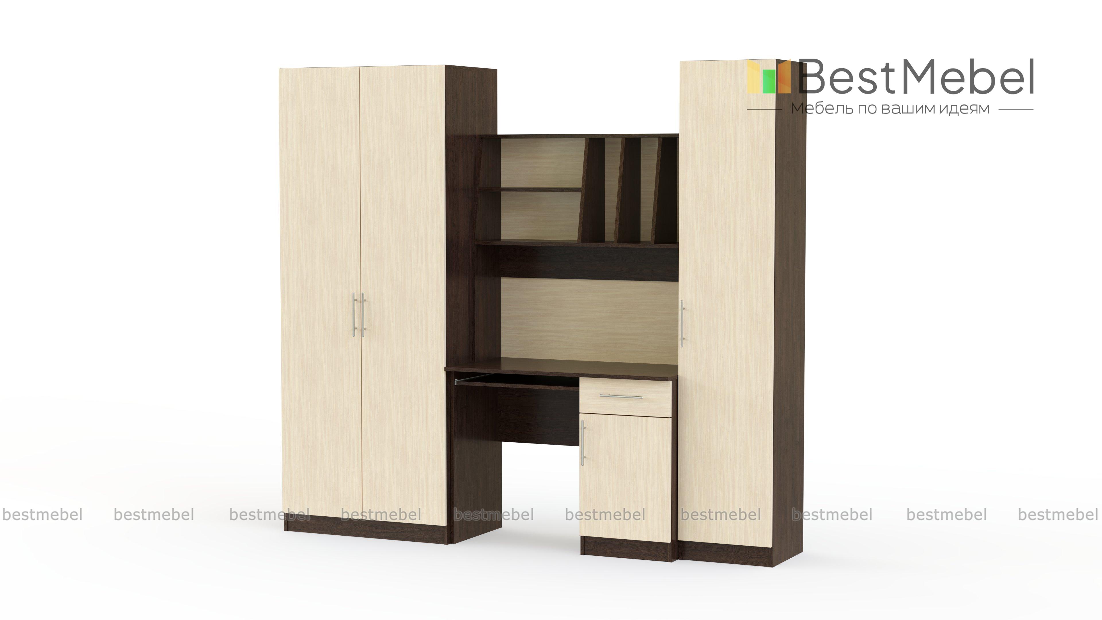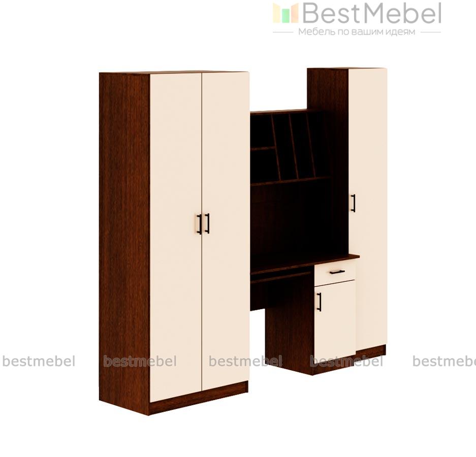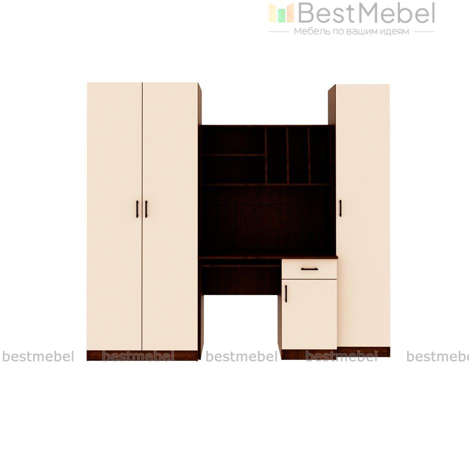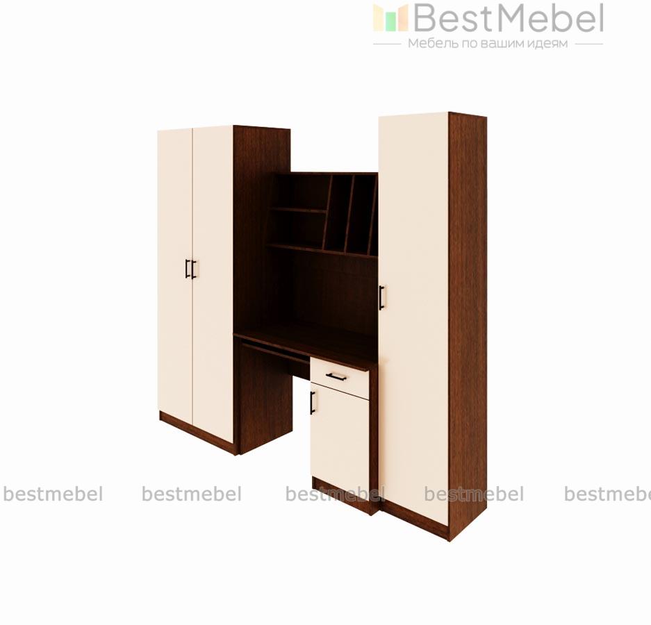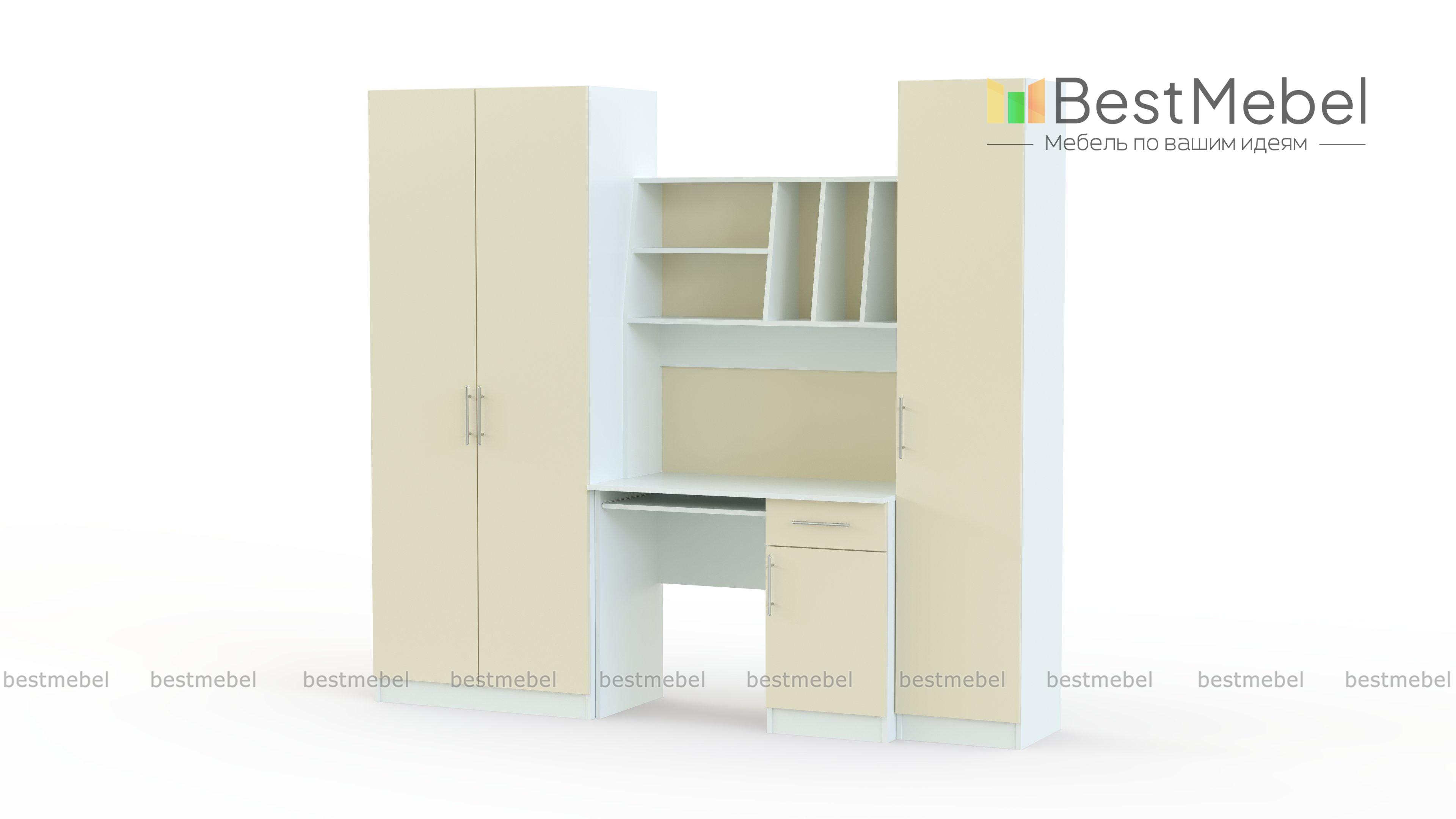 Детская стенка Юнга BMS – компактный рабочий уголок для подростка. Модель отличается простотой дизайна, но она не лишена индивидуальности, а её функциональности можно позавидовать. Шкаф для одежды отлично справится с хранением личных вещей ребенка, сведя к минимуму хаос в комнате. Для учебников, канцелярских принадлежностей и самого ценного и сокровенного имеется закрытый шкаф – пенал и тумба компьютерного стола. На столешнице хватит места и для работы за компьютером и для письменных работ. Для предметов первой необходимости имеются удобные просторные полки над столом. Базовые цвета модели гармонично сочетаются: ванильный корпус и белый фасад словно созданы друг для друга. Выбрав цветовое решение по своему вкусу, или предложив ребенку вместе выбрать цвет мебели, Вы получите продукт, который будет действительно радовать всех. Купить детскую стенку Юнга BMS Вы можете у нас на сайте по низкой цене и в отличном качестве.