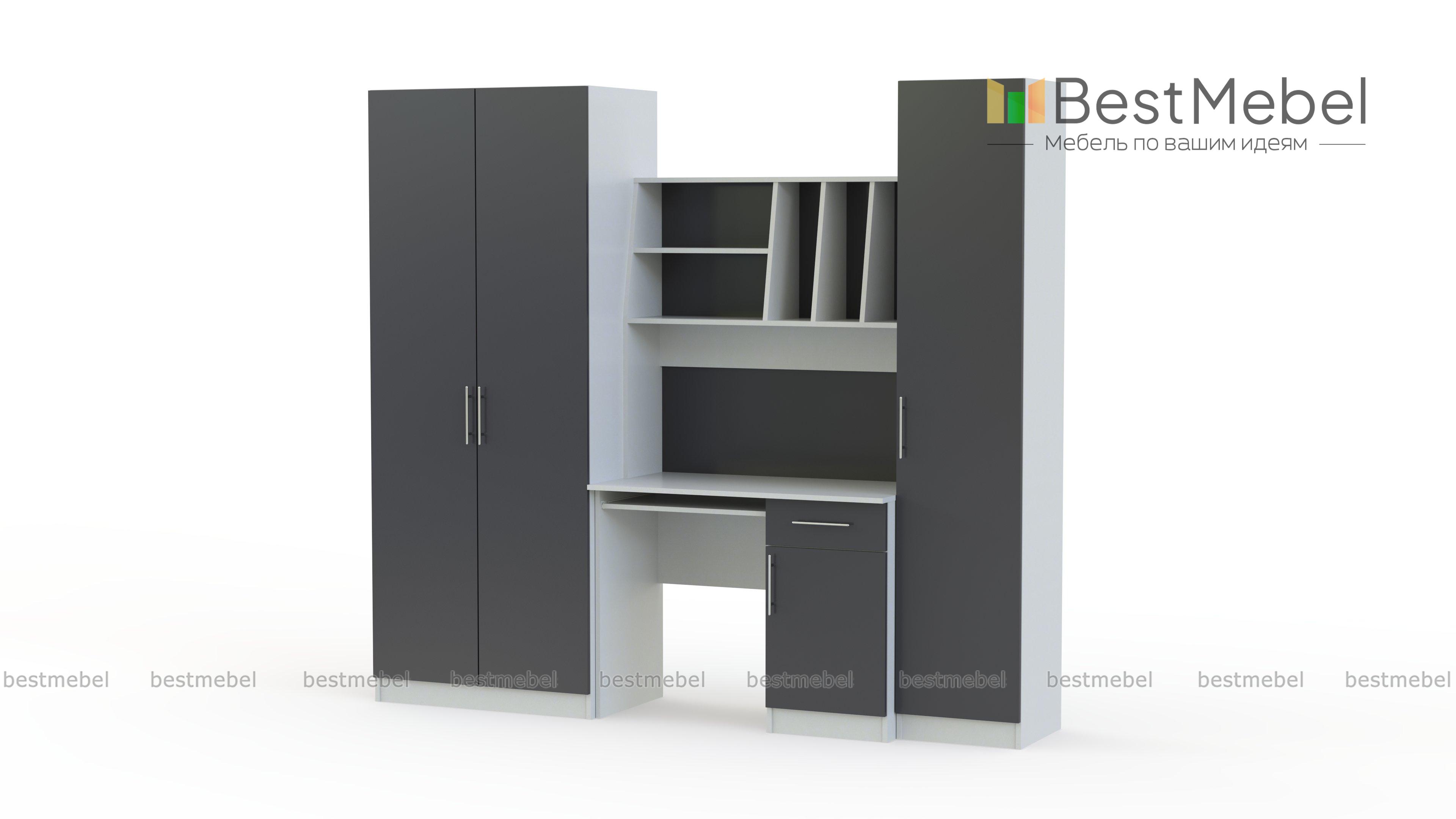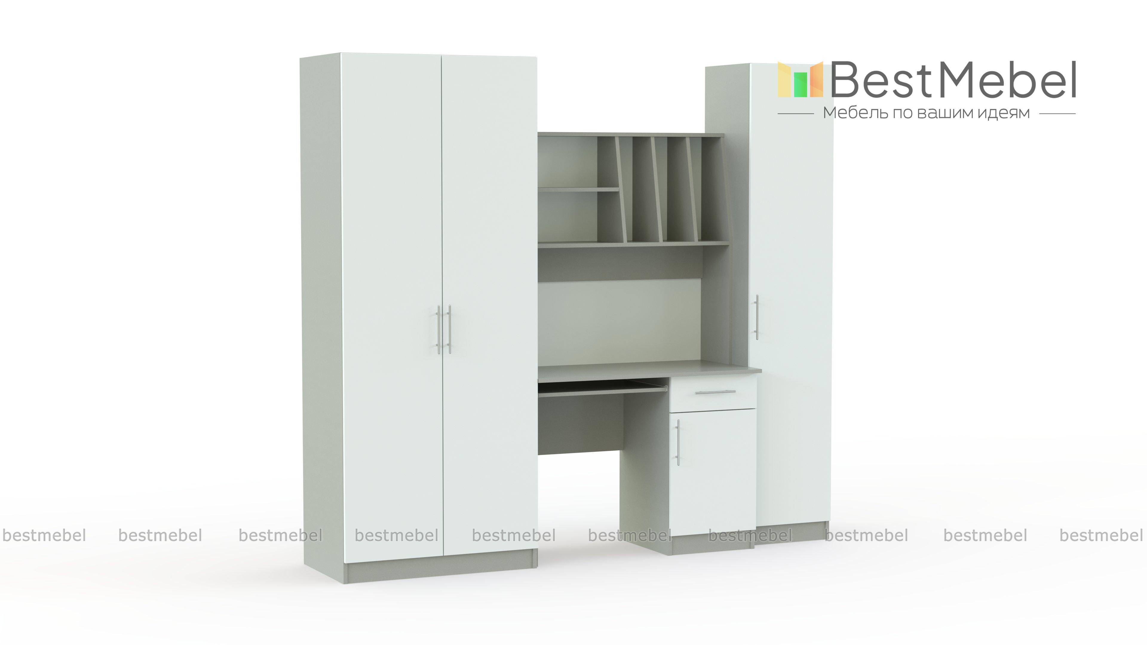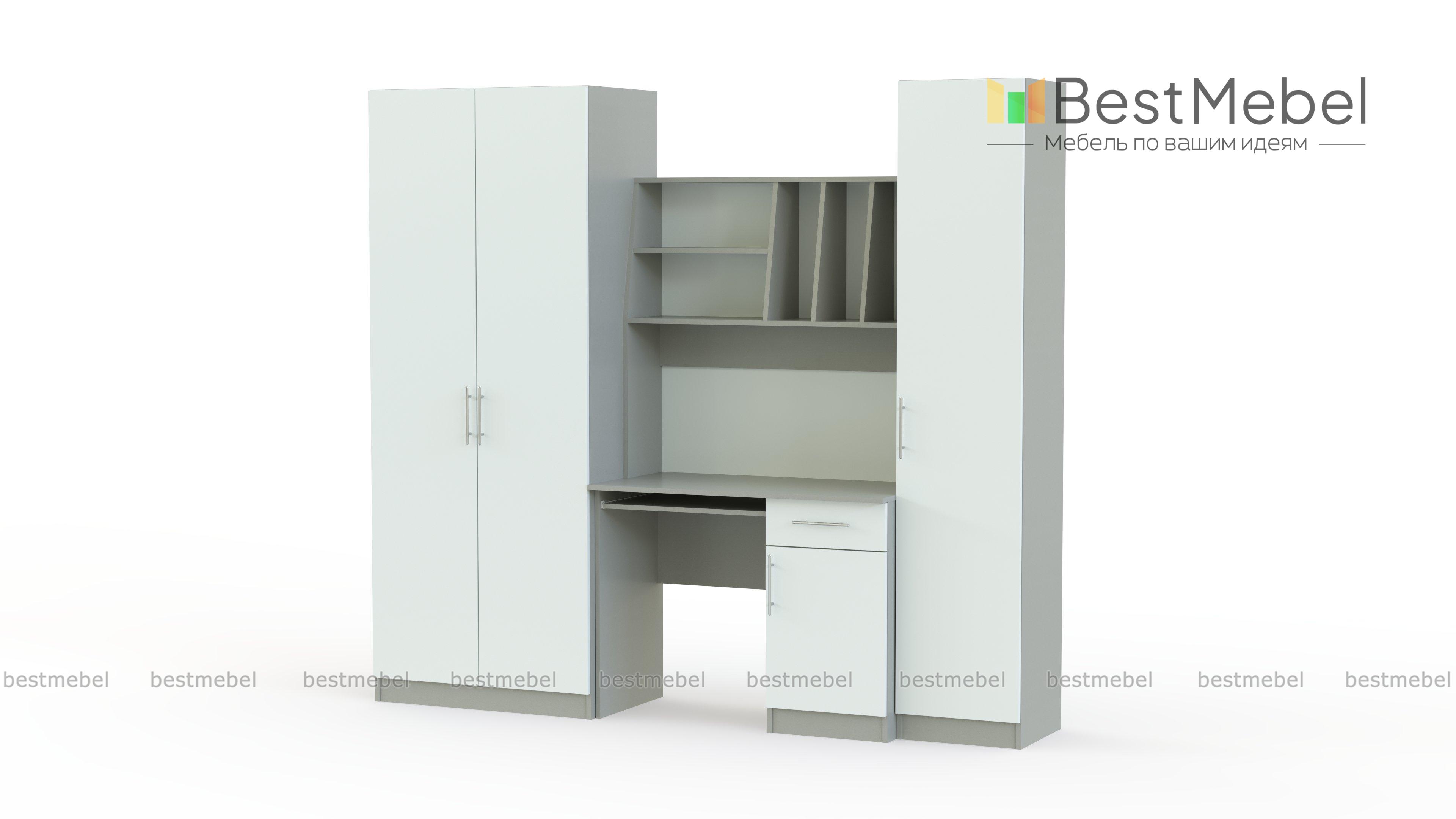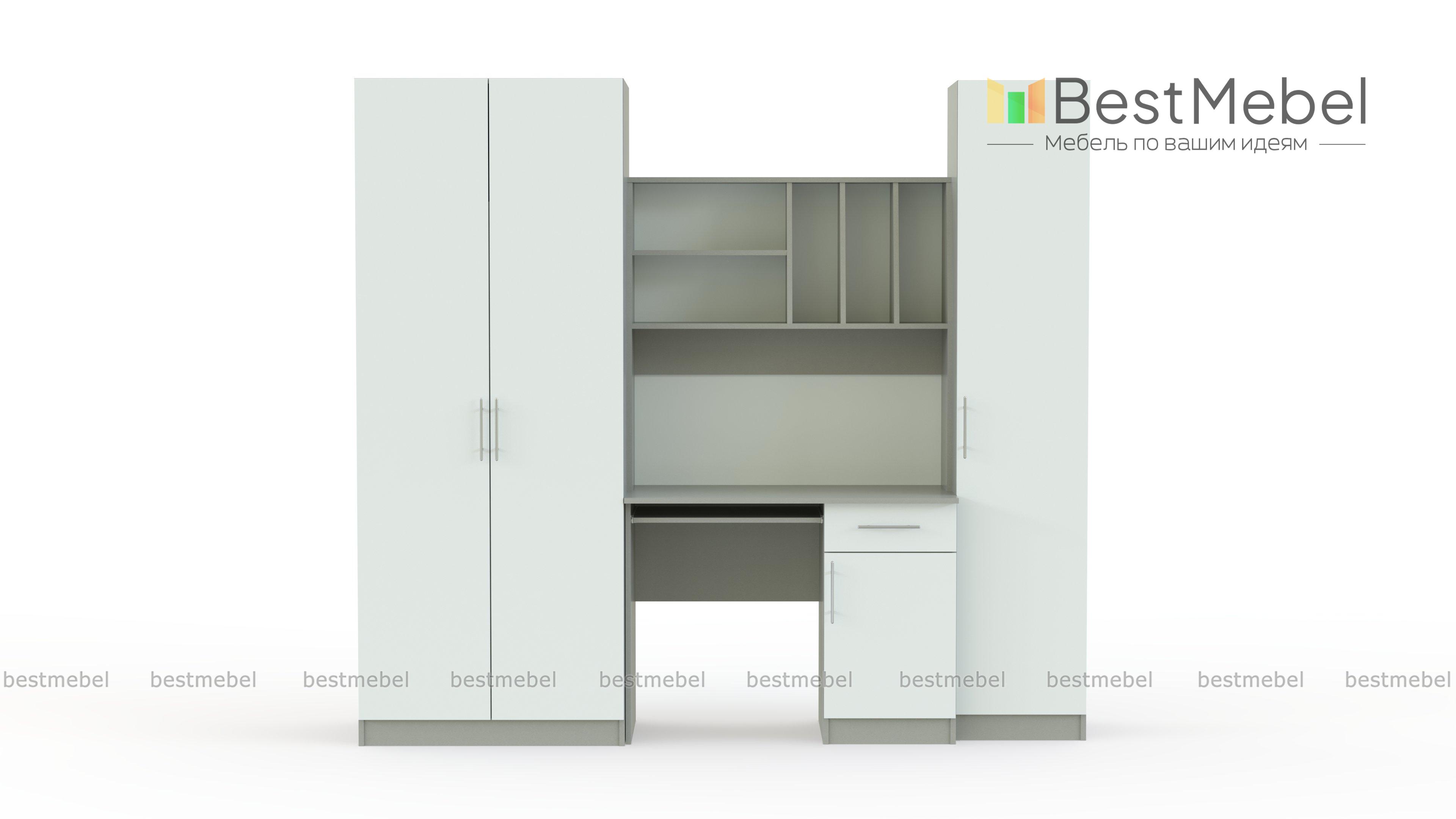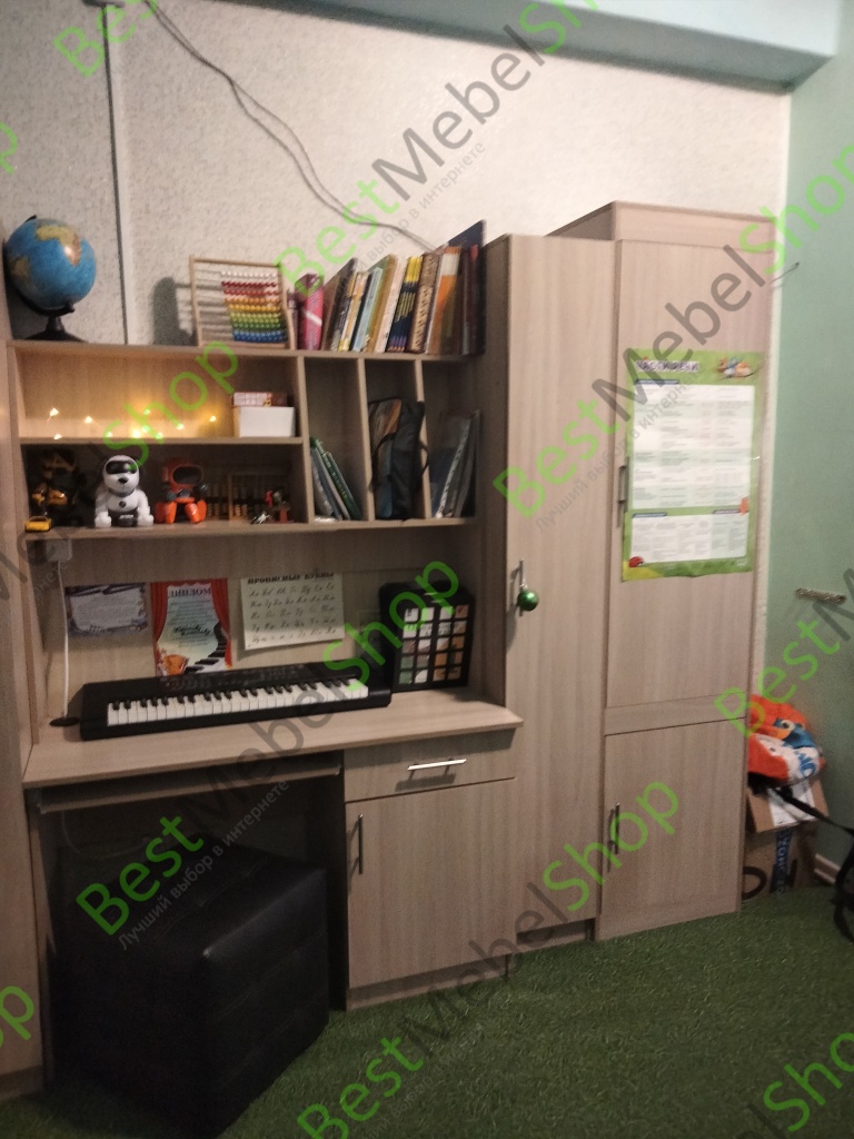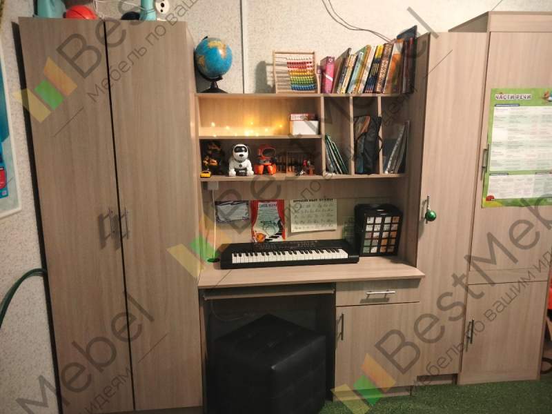 Детская стенка Юнга BMS – компактный рабочий уголок для подростка. Модель отличается простотой дизайна, но она не лишена индивидуальности, а её функциональности можно позавидовать. Шкаф для одежды отлично справится с хранением личных вещей ребенка, сведя к минимуму хаос в комнате. Для учебников, канцелярских принадлежностей и самого ценного и сокровенного имеется закрытый шкаф – пенал и тумба компьютерного стола. На столешнице хватит места и для работы за компьютером и для письменных работ. Для предметов первой необходимости имеются удобные просторные полки над столом. Базовые цвета модели гармонично сочетаются: ванильный корпус и белый фасад словно созданы друг для друга. Выбрав цветовое решение по своему вкусу, или предложив ребенку вместе выбрать цвет мебели, Вы получите продукт, который будет действительно радовать всех. Купить детскую стенку Юнга BMS Вы можете у нас на сайте по низкой цене и в отличном качестве.
