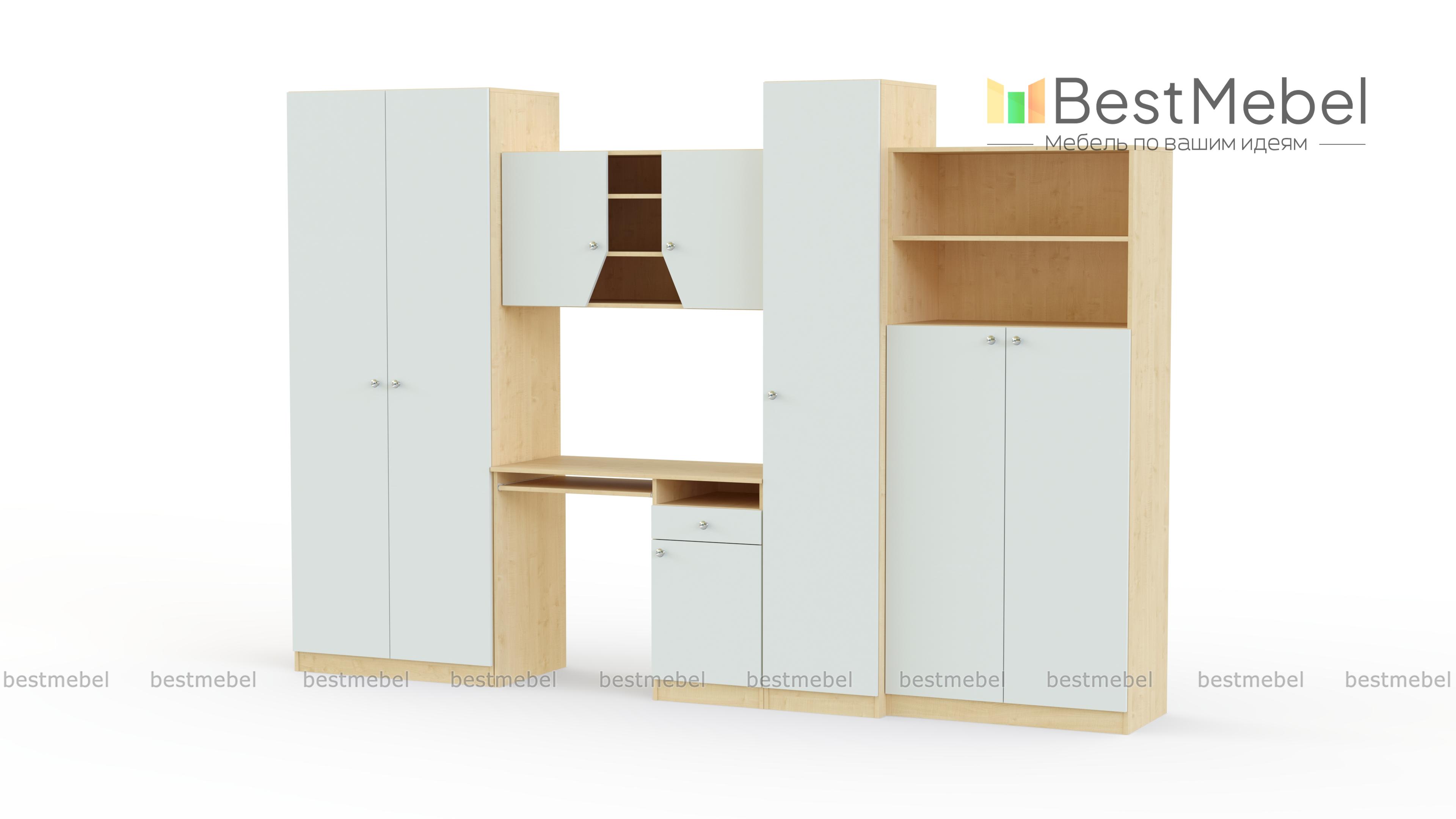 Нейтральная расцветка под массив светлого дуба, современный дизайн, оригинальная фурнитура – детская стенка Белла Р BMS непременно понравится подросткам. В комплекте письменный стол с тумбой и полкой для клавиатуры, навесной шкафчик, двухдверный одежный шкаф, пенал и комбинированный шкаф с открытыми полками и распашным отделением. Продуманная система обеспечит необходимым для учебы и досуга вещам удобное хранение. Благодаря лаконичной форме стенка легко впишется в интерьер.
