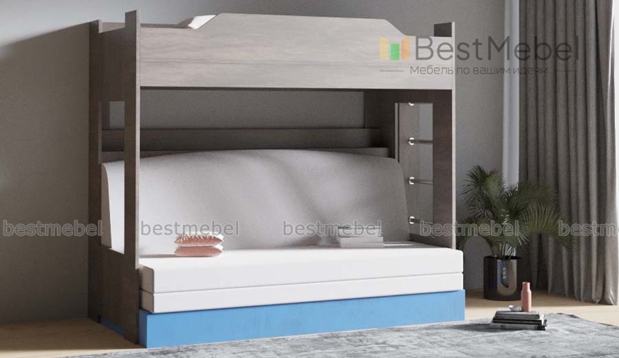 Кровать-чердак с диваном Мармелад 12 BMS сочетает в себе компактные размеры, надежность и функциональность конструкции. Двухъярусная модель станет практичным выбором для небольших детских комнат, помогая выгодно использовать доступное пространство. Комфортное спальное место второго яруса дополнено бортиком и лестницей с металлическими перекладинами, а на первом располагается раскладной диван. Купить кровать-чердак с диваном Мармелад 12 BMS, выполненную в нейтральных древесных тонах, приглашаем в наш интернет-магазин.