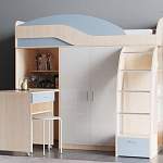 Кровать-чердак с рабочей зоной Мираж 3 BMS будет востребована в небольших помещениях, где важна экономия пространства. Выполненная в светлых тонах, модель включает в себя все самое необходимое для комфортного отдыха, учебы и хранения вещей. На втором ярусе располагается спальное место с защитным бортиком, а первый оборудован шкафчиком для одежды, выкатным письменным столом, лестницей с ящиком в основании и торцевым модулем с полками и распашным пеналом. Купить кровать-чердак с рабочей зоной Мираж 3 BMS вы сможете в нашем интернет-магазине.
