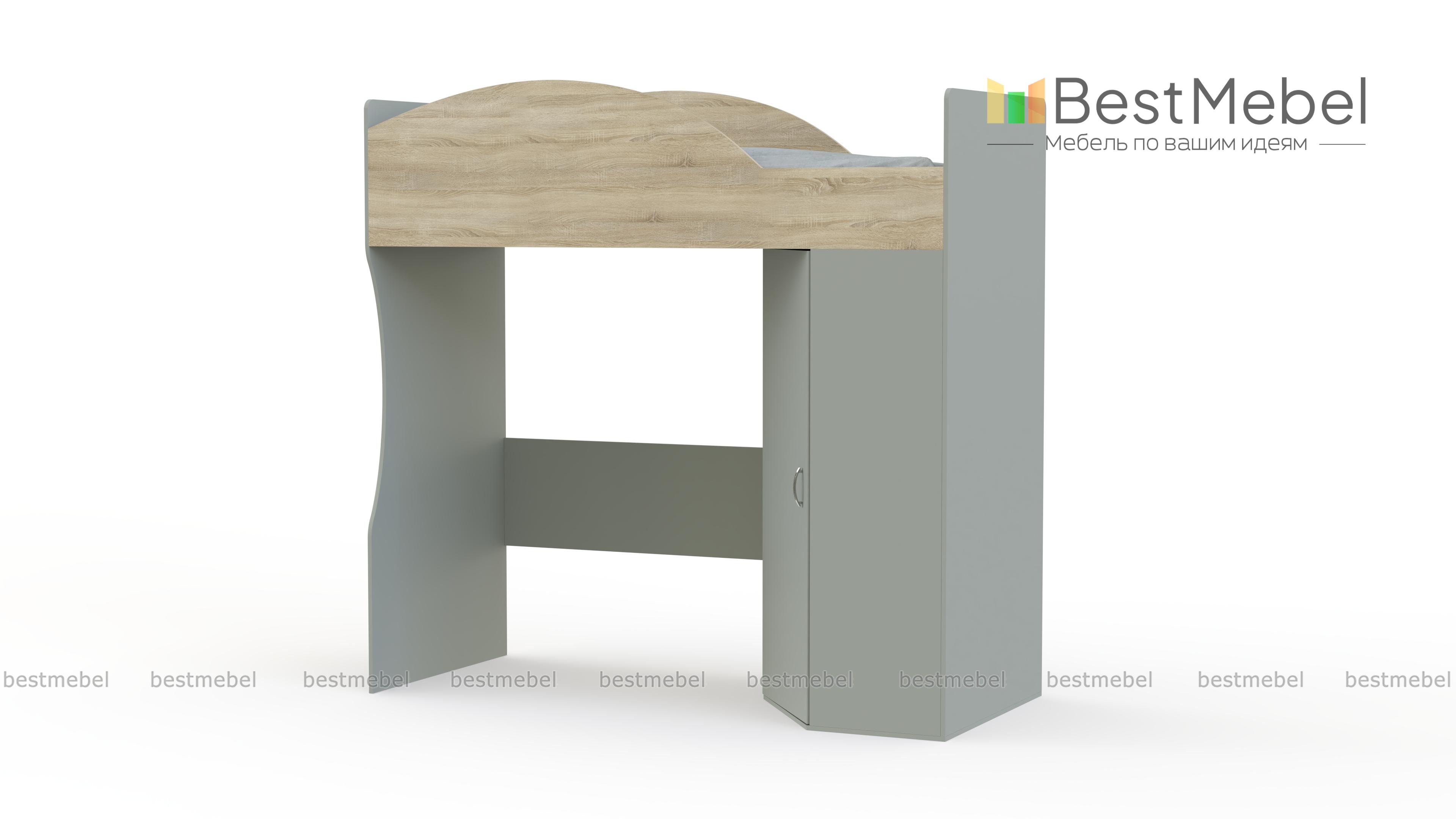 Кровать-чердак угловая Калейдоскоп 3 BMS представляет собой практичную комбинацию комфортного спального места и удобной системы хранения. Кровать второго яруса со скругленными защитными бортиками дополнена находящейся в нижней части просторной нишей и угловым распашным шкафом. Особенно просторный за счет трапециевидной формы, шкаф оборудован отделением со штангой и бельевыми полками. В оформлении сочетаются светлые древесные поверхности и белые элементы. Купить кровать-чердак угловую Калейдоскоп 3 BMS приглашаем в наш интернет-магазин.