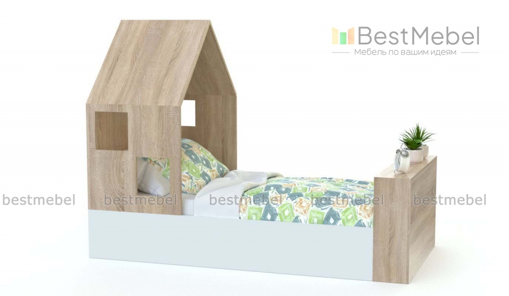 Кровать-домик Марс 13 BMS – это не только практичное интерьерное решение, но и центральный элемент дизайна современной детской. Модель с просторным спальным местом оборудована изголовьем в форме домика с двумя декоративными «окошками»-вырезами на боковине. Сочетание белого и светлых древесных тонов гармонично вписывается в уютные скандинавские интерьеры, а залогом безопасности и долговечности станут экологичные материалы. Купить кровать-домик Марс 13 BMS вы сможете на сайте нашего интернет-магазина.