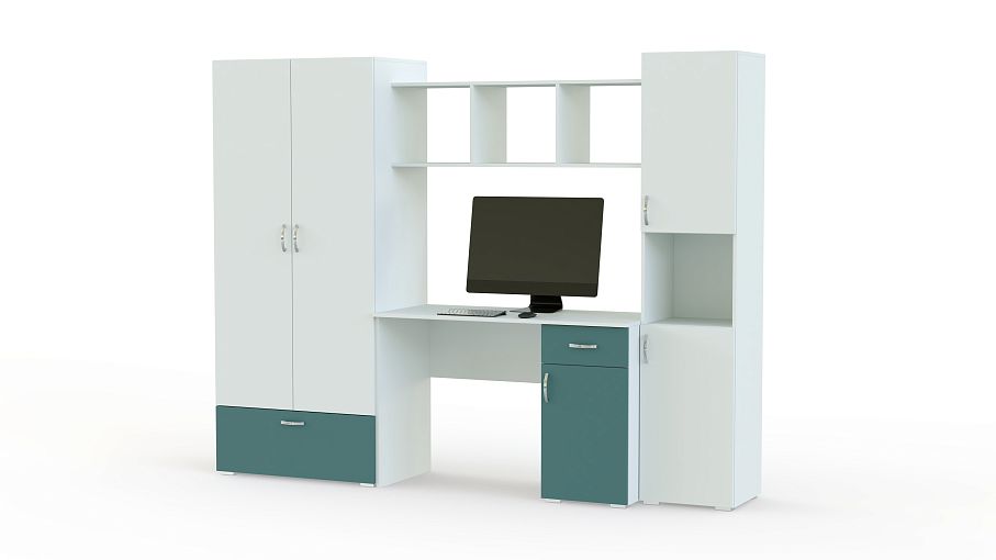 Легкий и изящный комплект, выполненный в нежных тонах и декорированный по фасадам шелковистым материалом, подойдет комнате юной леди. Простой и лаконичный по форме, он включает все необходимые для учебы, хранения гардероба, школьных принадлежностей и игрушек элементы. Элегантный письменный стол с тумбой, двухдверный одежный шкаф, открытые полки и вместительный пенал детской стенки Ариэль BMS вместе составляют гармоничную комбинацию и станут стильным акцентом современного дома.
