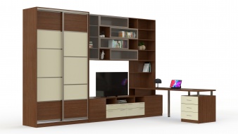Стенка со столом Каб-1 BMS поможет оборудовать молодежную комнату, гостиную или рабочий кабинет. Многофункциональная угловая композиция сэкономит полезную площадь, объединив рабочее место с зоной размещения ТВ и удобной системой хранения. В комплекте письменный стол с тумбой, тумба под аппаратуру, открытые и застекленные книжные полки, а также двухдверный шкаф-купе для одежды. Цветовое решение в древесных тонах и белом делает стенку универсальной. Купить стенку со столом Каб-1 BMS приглашаем к нам в интернет-магазин.