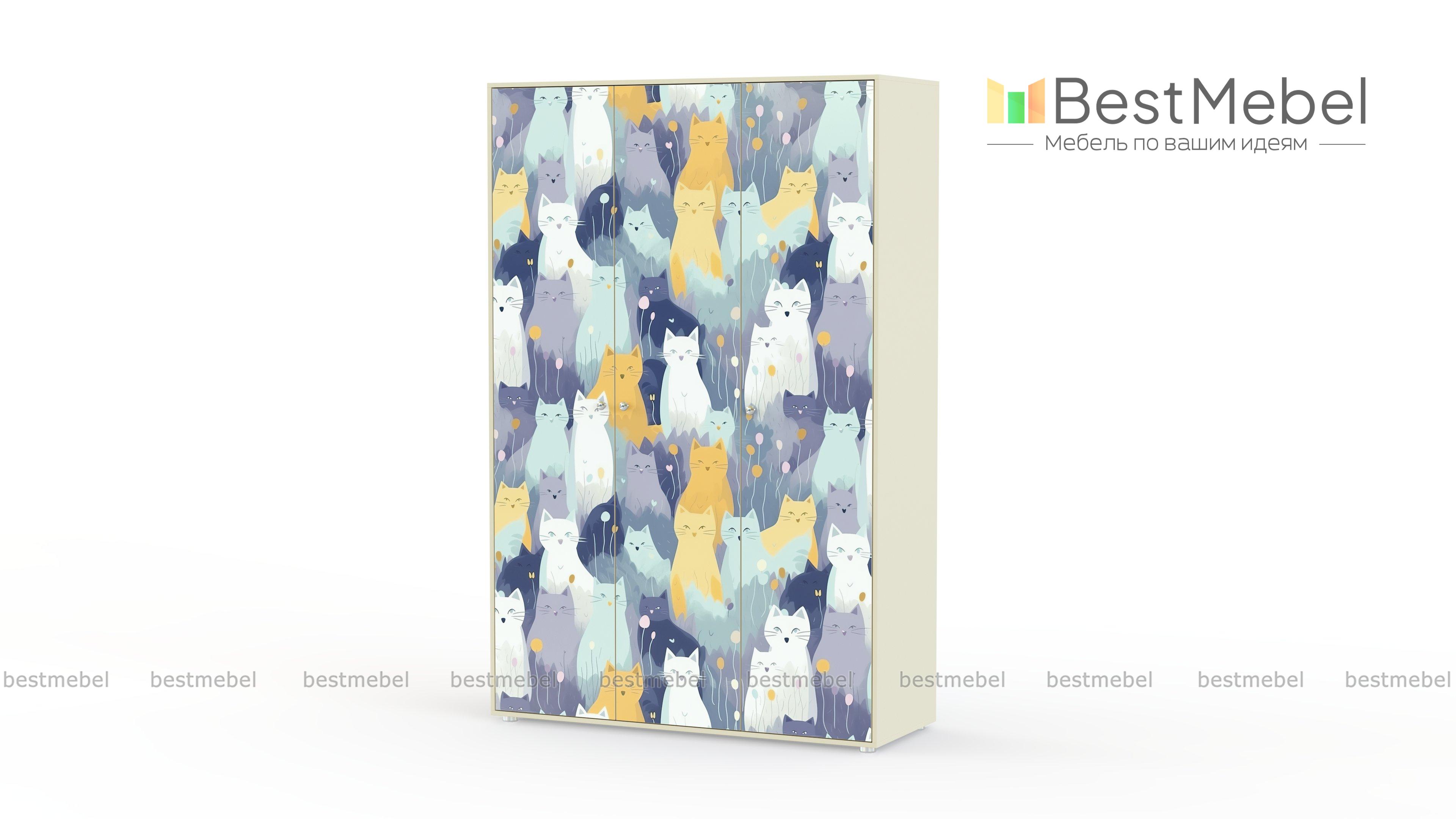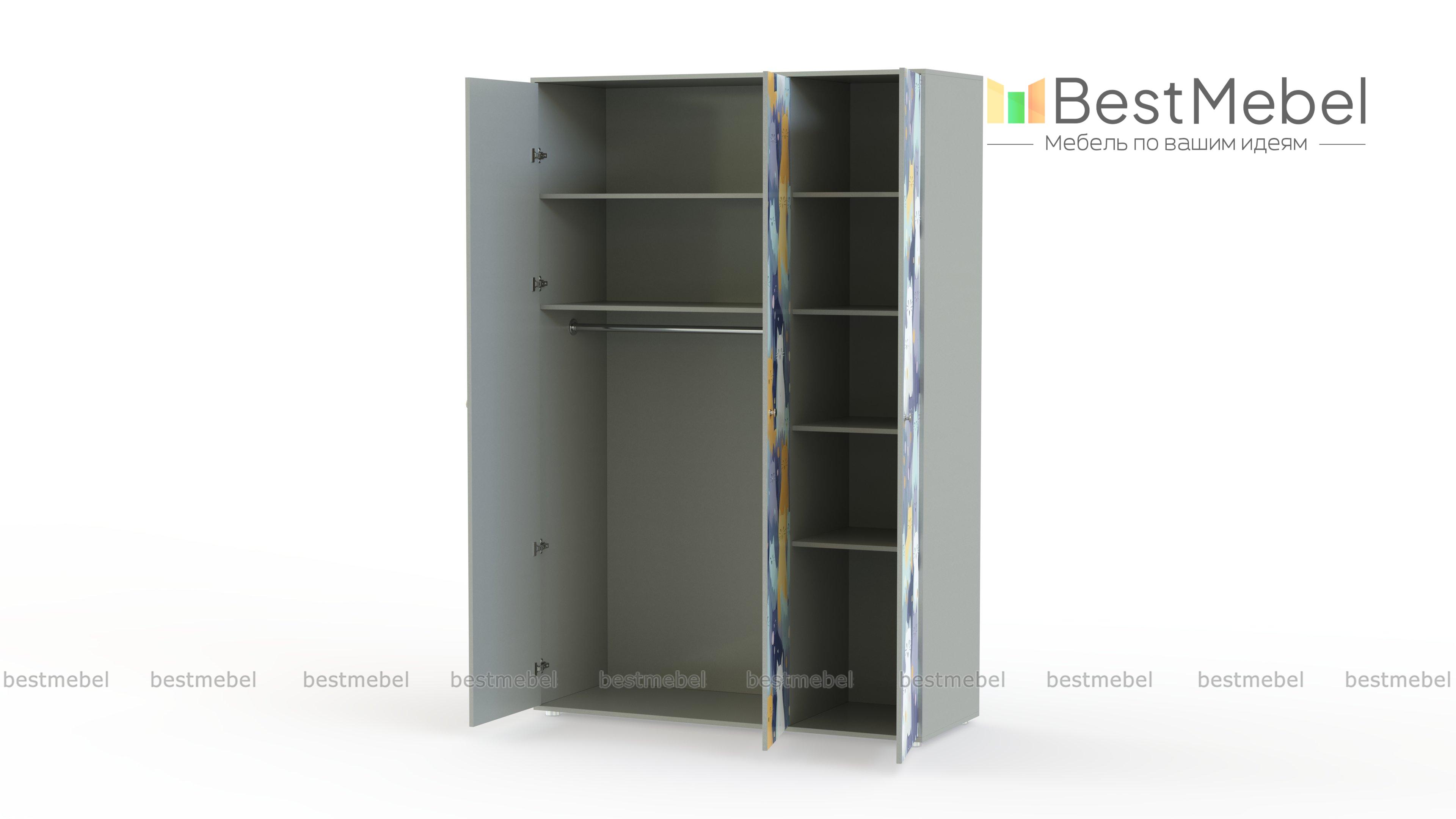 Трёхдверный шкаф Редди BMS с милым принтом непременно понравится любителям домашних животных. Трехдверный распашной шкаф органично впишется в интерьер детской и поможет легко поддерживать порядок в вещах. Платяное отделение укомплектовано двумя верхними полками и штангой, а в бельевом отсеке располагаются полки стандартной и увеличенной высоты. Купить трехдверный шкаф Редди BMS с выбором размеров, цвета и фурнитуры вы сможете недорого в нашем интернет-магазине.
