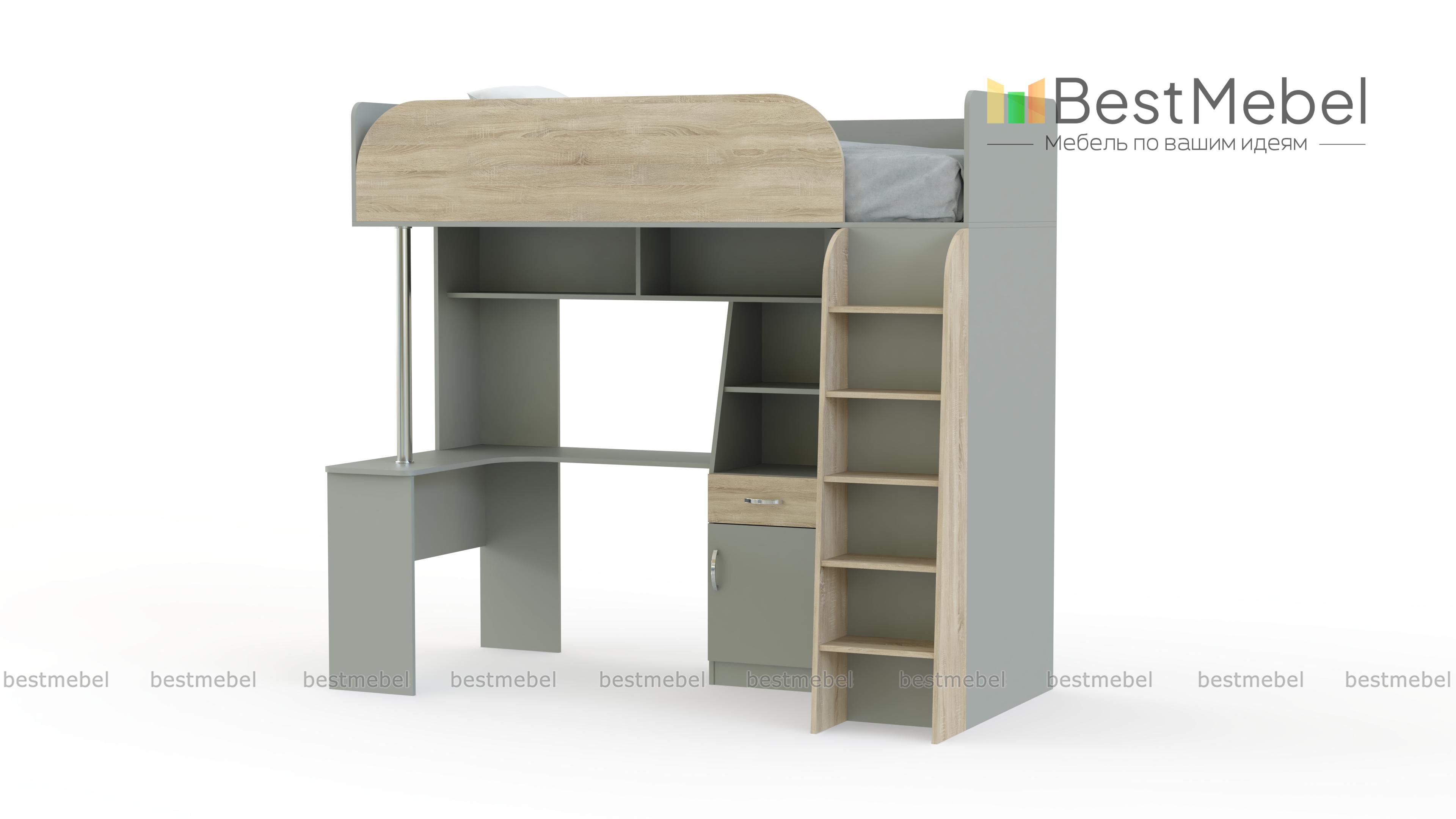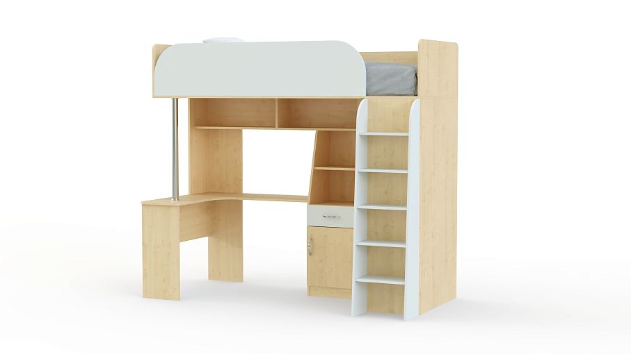 Угловая кровать-чердак Мультиплекс BMS – это целый мебельный комплекс, в котором объединено все необходимое ребенку или подростку для полноценного сна, учебы и хранения вещей. Композиция включает в себя спальное место с защитными бортиками, угловой письменный стол эргономичной формы, тумбу, открытые полки, распашной шкаф и устойчивую лестницу-стеллаж. Благодаря продуманной до мелочей конструкции вы сможете оборудовать комфортную и уютную детскую даже в малогабаритном помещении. Купить угловую кровать-чердак Мультиплекс BMS и выгодно использовать особенности планировки вам поможет наш интернет-магазин.