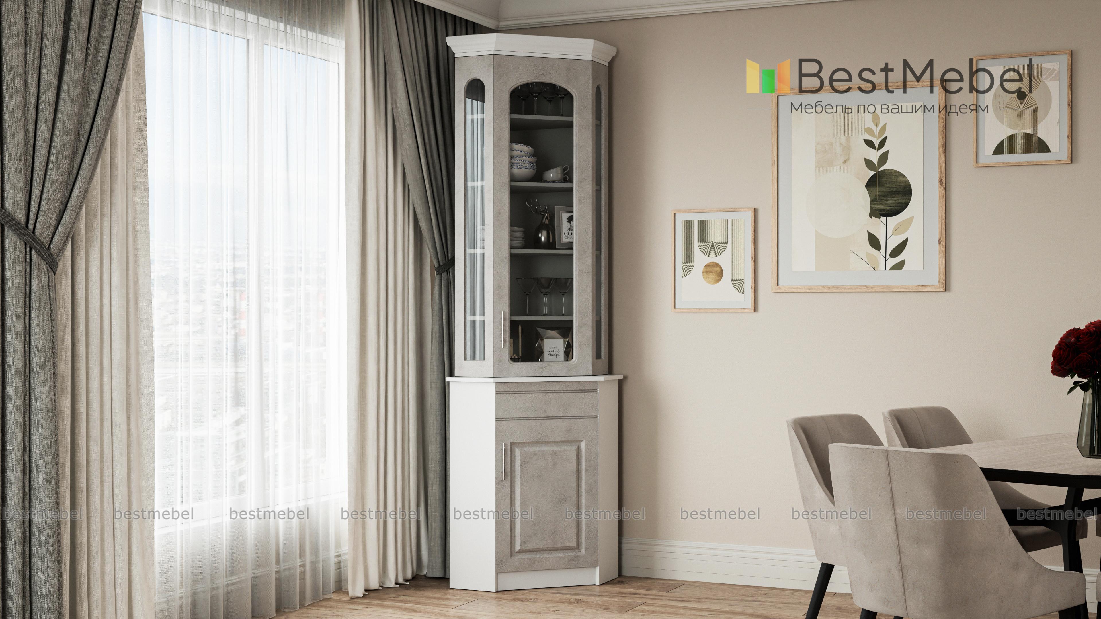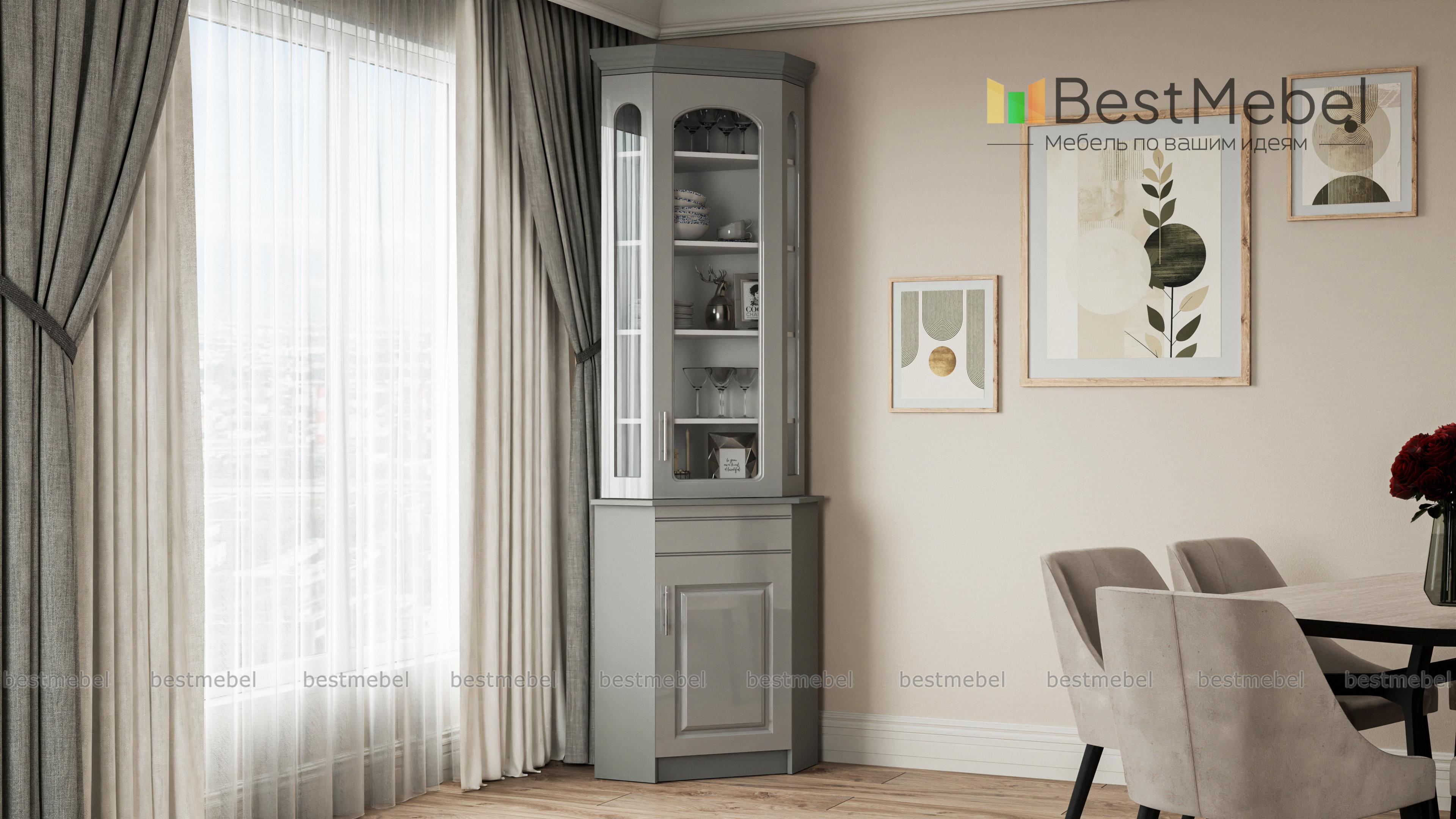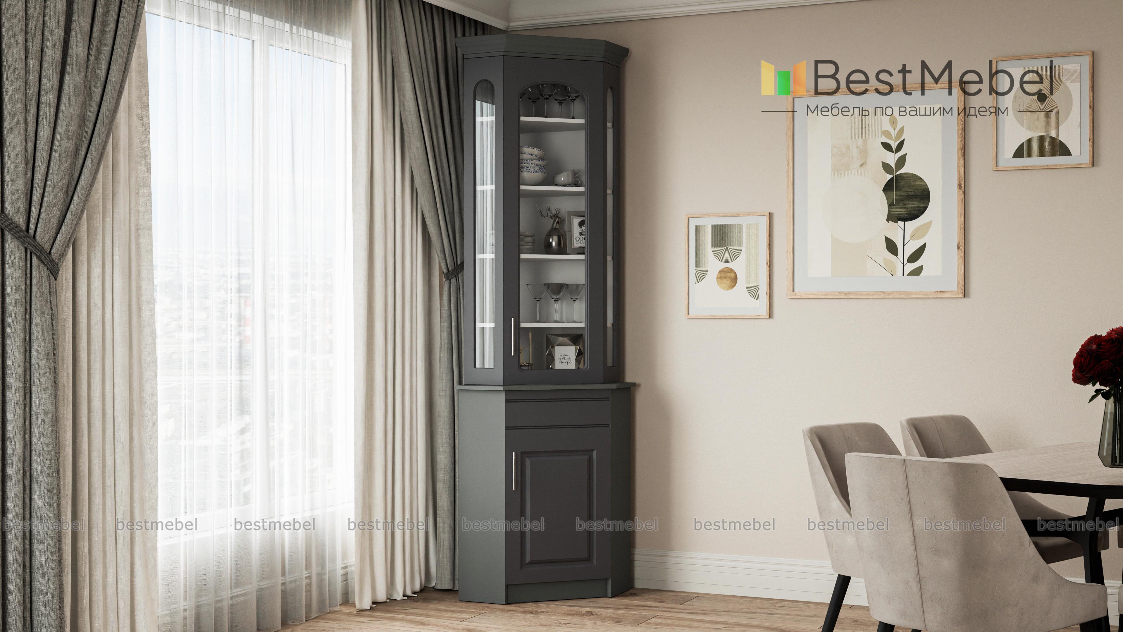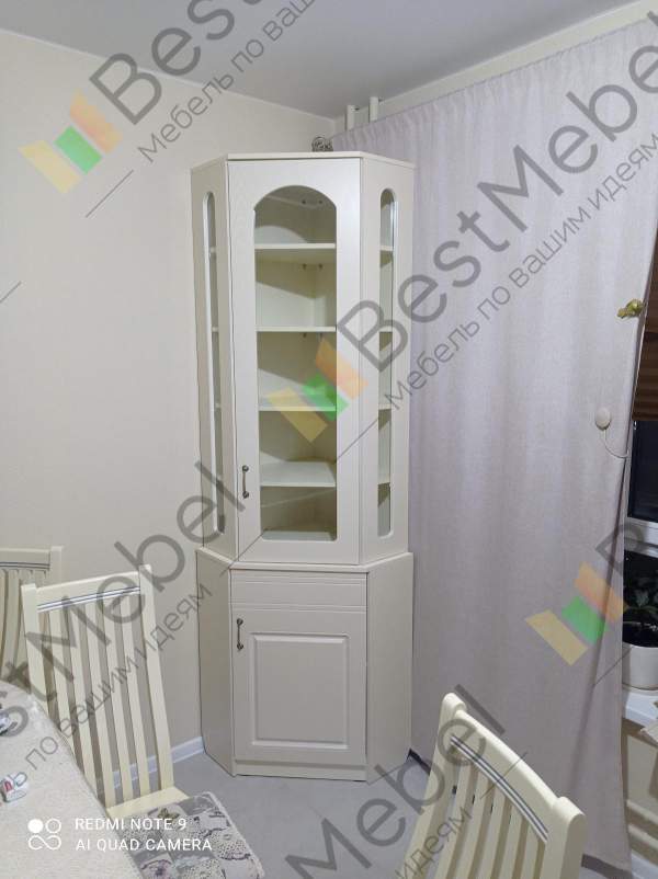 Удобный угловой буфет. Идеально заполнил угол на кухне. Хорошо, что можно заказать изготовление по своим размерам