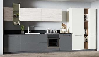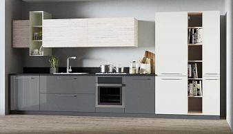 Прямые серо-белые кухни в Москве