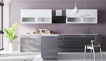 Прямые серо-белые кухни в Донецке
