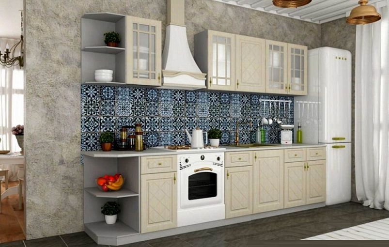 Кухня Гранд 2,4 BMS гармонично сочетает классический дизайн с современной функциональностью. Разнообразие входящих в комплект модулей позволит разместить все необходимое – от бытовой техники до интерьерных украшений, а светлые тона сделают помещение визуально просторнее. Фасады модели декорированы изящной фрезеровкой и стильными ручками под золото, застекленные шкафчики оформлены рамками и решеткой. Купить кухню Гранд 2,4 BMS, выбрав нужные параметры, вы сможете в нашем интернет-магазине.