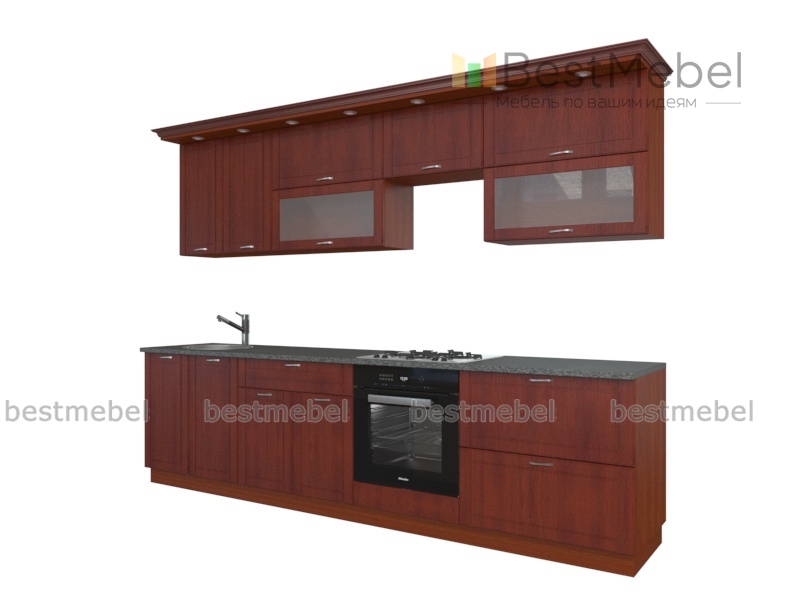 Кухня Престиж Вишня BMS отличается современной лаконичностью дизайна, которая позволит вписать комплект в интерьеры разного типа. Продуманная комбинация элементов поможет без труда разместить как габаритные кухонные принадлежности, так и мелочи, продукты и декоративные предметы. Глухие распашные дверцы с легкой фрезеровкой дополнены двумя горизонтальными витринами с откидными вверх дверцами. Купить кухню Престиж Вишня BMS, удачно объединившую традиционную респектабельность и модные тенденции, приглашаем в наш интернет-магазин.