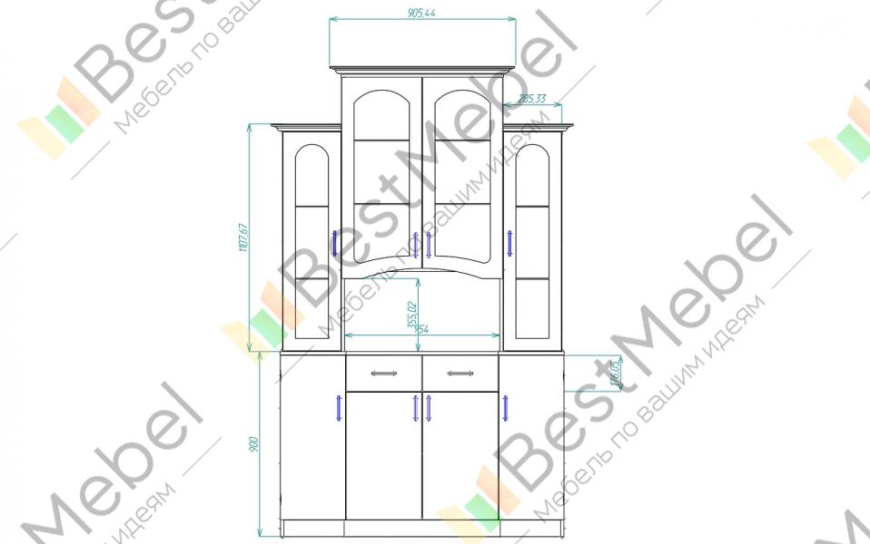 Шкаф под посуду Вероника 2 BMS станет оригинальным и практичным дополнением интерьера столовой или гостиной. Элегантная модель в классическом стиле позволит эффектно разместить посуду и предметы декора в застекленных шкафчиках-витринах. Нижняя часть шкафа – комбинация вместительных распашных отделений и выдвижных ящиков. Гнутые фасады декорированы неброской фрезеровкой и изящными ручками. Купить шкаф под посуду Вероника 2 BMS, подобрав оптимальное цветовое решение, вы сможете в нашем интернет-магазине.