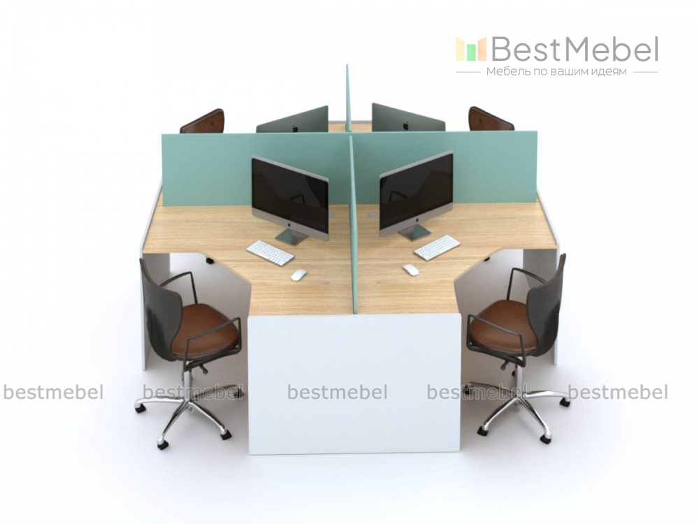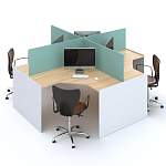 Бенч-система Лайн BMS станет частью креативного, современного офисного пространства. Оригинальная композиция объединила четыре угловых компьютерных стола с эргономичной формы столешницами, оборудованных широкими устойчивыми опорами-боковинами. Для зонирования рабочих мест использованы глухие перегородки, выполненные в контрастном цвете. Купить бенч-систему Лайн BMS, комфортную для командной и индивидуальной работы, приглашаем в наш интернет-магазин.
