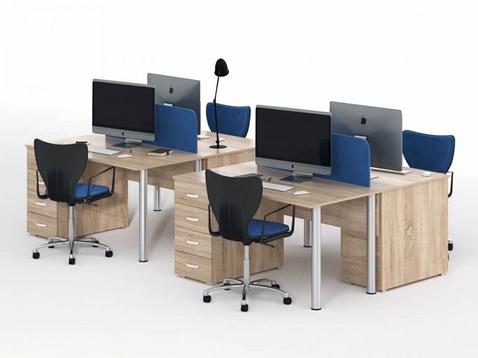 Бенч-система Паула BMS отличается компактными размерами, но обеспечит двух сотрудников всем необходимым для комфортной работы. Система объединяет четыре письменных стола с традиционными прямоугольными столешницами, удобными для письма и работы за компьютером. Для хранения канцелярских мелочей и бумаг предусмотрены тумбы с выдвижными ящиками, а особенную визуальную легкость композиции придают хромированные круглые ножки. Купить бенч-систему Паула BMS по доступной цене приглашаем в наш интернет-магазин.