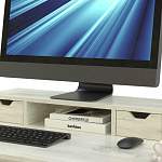 Подставка под монитор Мокко-4 BMS поможет легко расширить функционал рабочего стола. Выполненная в тон корпусу, подставка устанавливается на столешницу и позволяет эффективно использовать пространство. Вы сможете не только разместить на удобной для глаз высоте монитор, но и хранить все важные мелочи в просторной нише и двух выдвижных ящичках с вырезными ручками. Купить подставку под монитор Мокко-4 BMS приглашаем на сайт нашего интернет-магазина, подобрав цветовое решение.
