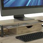 Подставка под монитор Сена-3 BMS отлично вписывается в лофты и интерьеры стиля индастриал. Брутальная модель в крафтовых древесных тонах располагается на металлических опорах из профиля контрастного цвета. Двойная столешница, вместительный выдвижной ящик и открытые боковые секции позволяют установить на удобной высоте монитор и хранить в быстром доступе канцелярские мелочи и бумаги. Купить подставку под монитор Сена-3 BMS и расширить функционал рабочего стола вам поможет наш интернет-магазин.