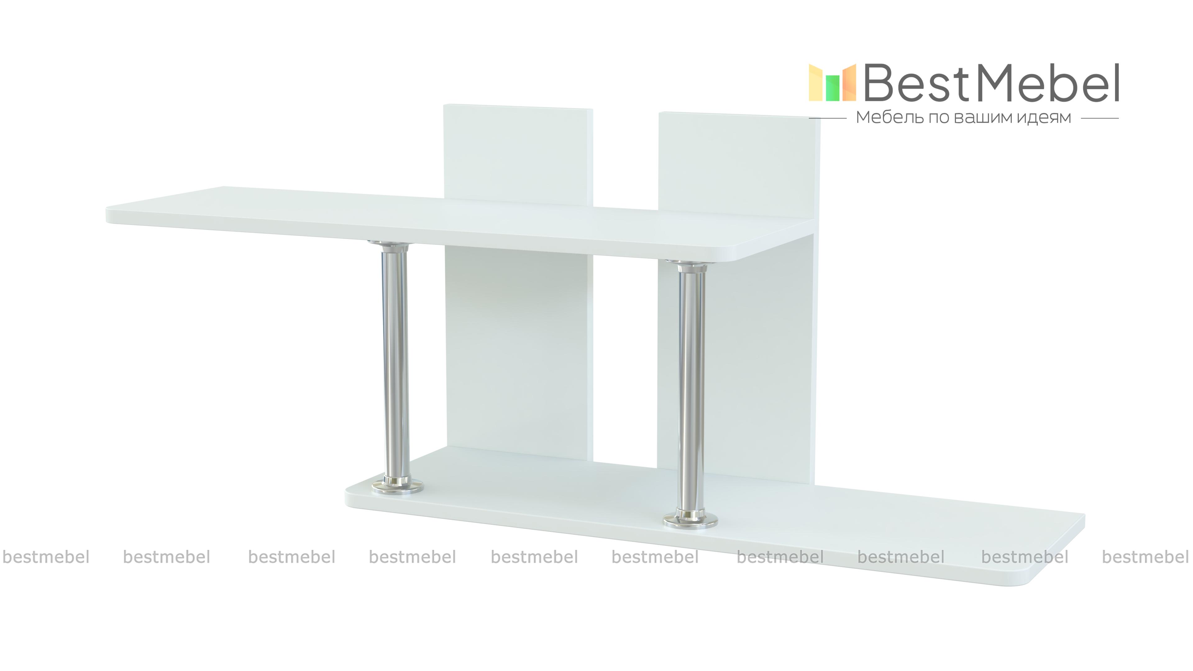 Полка навесная ПН-1 BMS изящна и проста в исполнении. Мебель офиса – лицо всей компании. Поэтому подбирайте достойные, привлекательные изделия. К таким качествам подходит представленная полка. Её лёгкая конструкция из двух полок, дополнена великолепными стойками. Благодаря им, полки, как будто, парят в воздухе. Некоторые книги или элементы декора, которыми гордится начальник, могут занять эти прекрасные ниши. На сайте предложено несколько оттенков для оформления изделия. Купить полку навесную ПН-1 BMS можете в интернет-магазине Бэст Мебель Шоп по низкой цене.