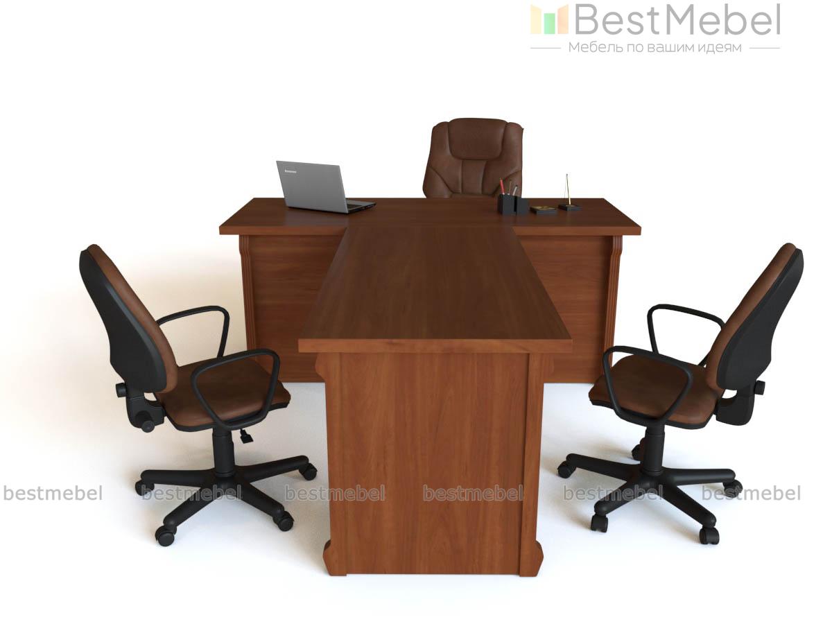 Стол руководителя Берни BMS воплощает все достоинства классики, отличаясь гармоничными пропорциями, сдержанным традиционным декором и высоким качеством исполнения. Атмосферу респектабельности создают теплые оттенки под массив ореха, массивные столешницы и широкие, устойчивые опоры с фигурно вырезанными элементами. Письменный стол дополнен приставным брифингом и удобен для ведения переговоров и совещаний. Купить стол руководителя Берни BMS с учетом необходимых параметров вы сможете в нашем интернет-магазине.