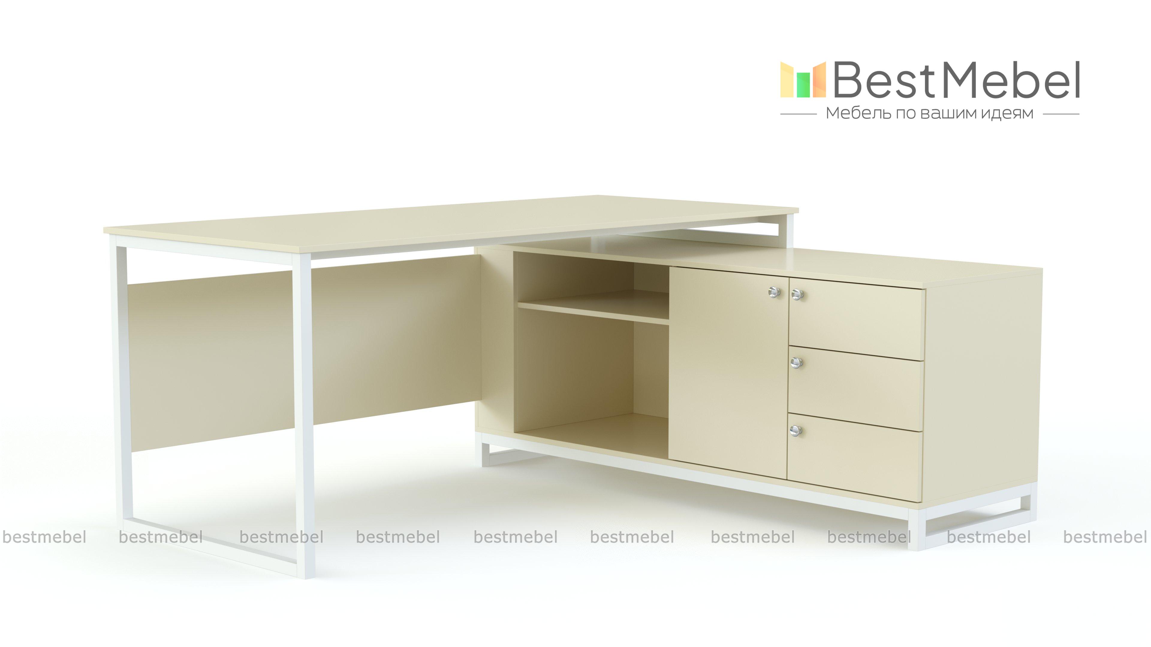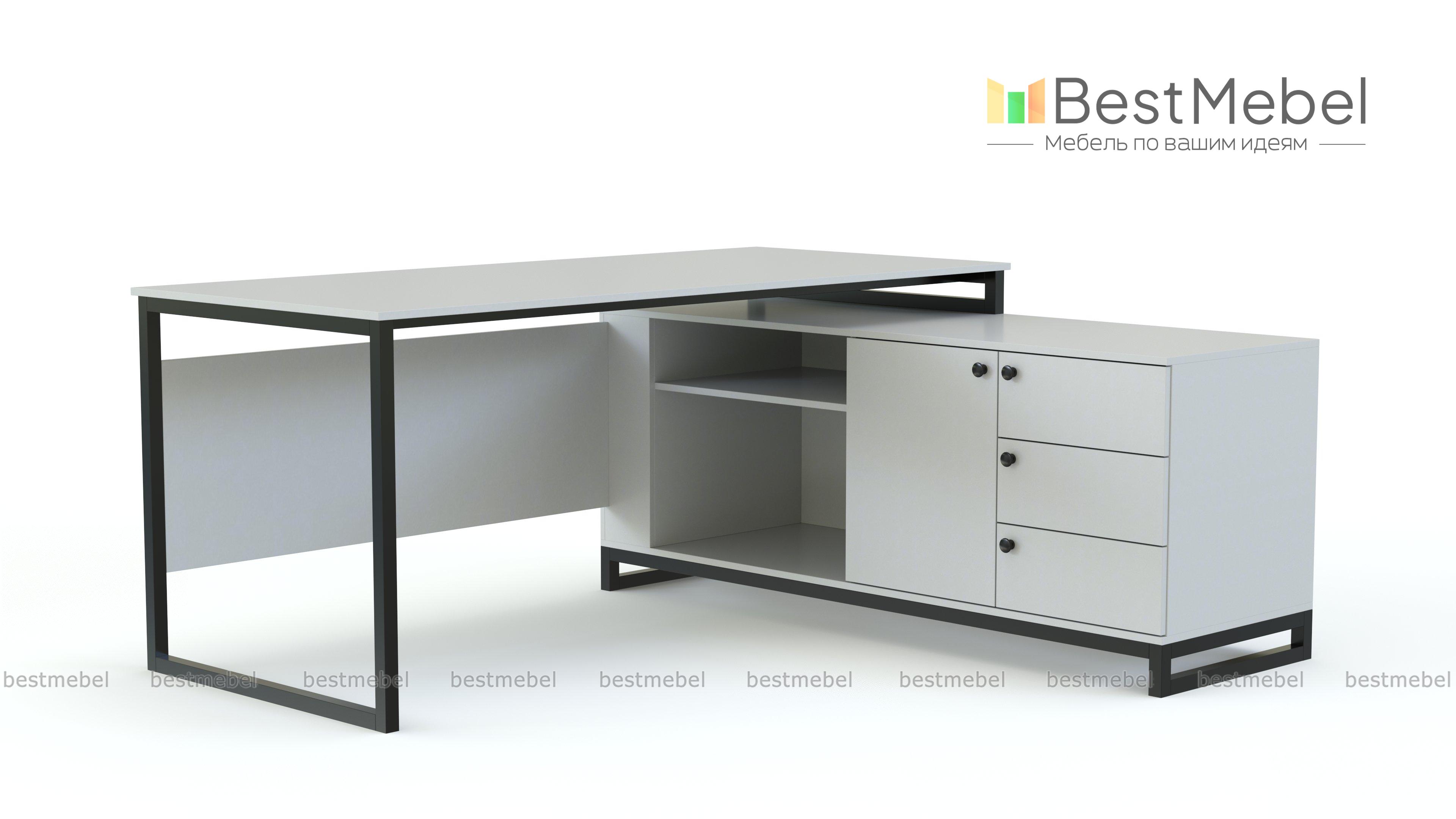Стол руководителя Эмма 11 BMS на опорной тумбе выполнен в трендовой эстетике лофта. Для изготовления письменного стола и многофункциональной тумбы использованы ламинированная плита с имитацией древесной фактуры и металлический профиль. Удобная система хранения для деловых бумаг, канцелярских принадлежностей и оргтехники включает в себя открытые секции, распашные и выдвижные отделения. Купить стол руководителя Эмма 11 BMS вы сможете в нашем интернет-магазине, подобрав размеры, цвет и фурнитуру.