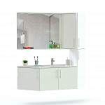 Комплект для ванной комнаты Пирс 4 BMS смотрится особенно эффектно в черном цвете с хромированной фурнитурой. Стильная геометричная композиция объединила двухдверную распашную тумбу под раковину с угловым элементом, пенал со скошенным фасадом и зеркальное полотно с открытой полкой для мелочей, шкафчиком и встроенной в козырек подсветкой. Подвесная конструкция модулей облегчает уборку в помещении. Купить комплект для ванной комнаты Пирс 4 BMS и создать эргономичный интерьер вам поможет наш интернет-магазин.